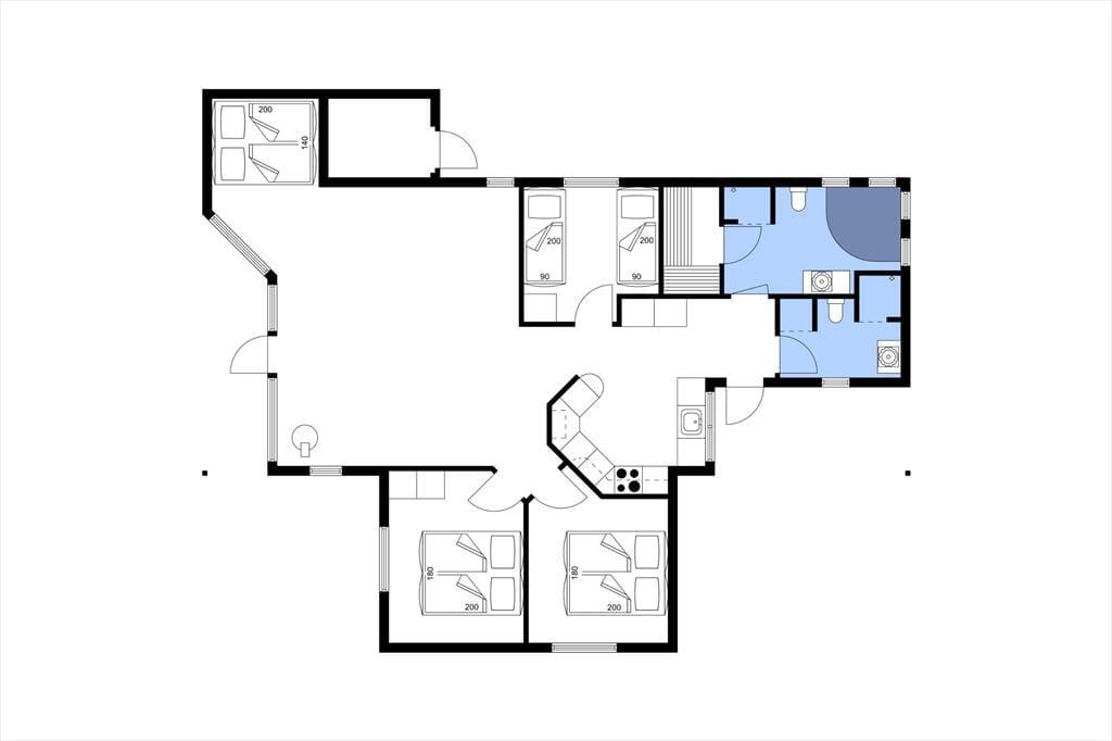 Huset indeholder lyst køkken i åben forbindelse til spise- og opholdsstue med brændeovn og udgang til terrasse, 3 gode soveværelser (to med dobbeltsenge og et med to enkeltsenge) – yderligere to sovepladser befinder sig i hyggelig alkove i stuen – badeværelse med bruseniche, spa og sauna og endelig et gæstebadeværelse med bruser. Huset er i den grad velegnet til børnefamilier, idet den store, lukkede have rummer både legestativ og nedgravet trampolin, 25 meter lang svævebane m.v. Tag en tur ud i den skønne alsiske natur: Områdets i særklasse bedste badestrand er inden for komfortabel afstand - det samme er den historiske ”Gendarmsti”.