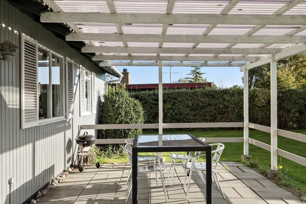 Det lille hyggelige sommerhus er beliggende for enden af lukket vænge i den gamle del af Skovmose med kort afstand til Als’ i særklasse bedste badestrand. Huset indeholder lille entré / vindfang, køkken i åben forbindelse med spise og opholdsstue, soveværelse med dobbeltseng og soveværelse med køjer og endelig badeværelse med bruser. Haven er primært udlagt med græs og indbyder til boldspil og leg. Find en skyggefuld plet på plænen eller terrassen med en god bog og en kop kaffe mens ungerne får brugt lidt af den ungdommelige energi.
