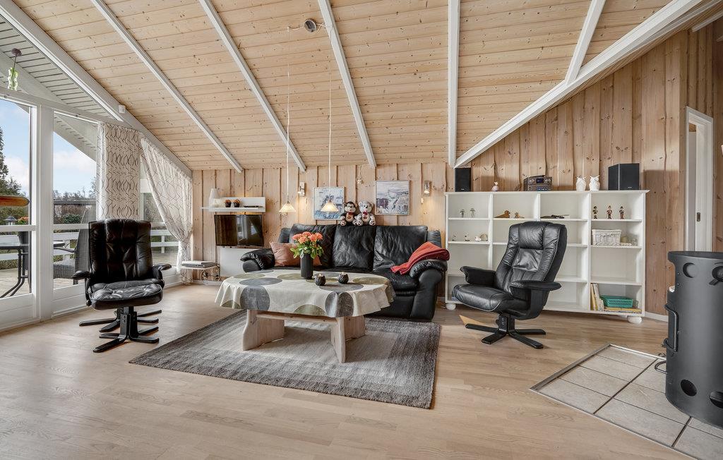 Dette flotte luksushus ligger på en blind vej i et roligt feriehusområde i smukke naturomgivelser med områdets bedste badestrand. Huset er nydeligt indrettet overalt og udstyret med eksklusive, skandinaviske kvalitetsmøbler. Fra den dejlige lyse stue, som både har brændeovn samt en energivenlig varmepumpe, er der udgang til en stor sydvestvendt terrasse, der både er delvist overdækket samt indhegnet. På de kølige aftener kan I benytte den infrarøde terrassevarmer. Over alt i huset kan I benytte den trådløse internetforbindelse, hvilket giver gode muligheder for at følge med på jobbet eller blot dele ferieoplevelserne med familie og venner. På egnen kan I få mange dejlige oplevelser i naturen. Besøg også oplevelsesparken Universe på Nordals. Det er en oplevelse for både børn og voksne (vinterlukket)
