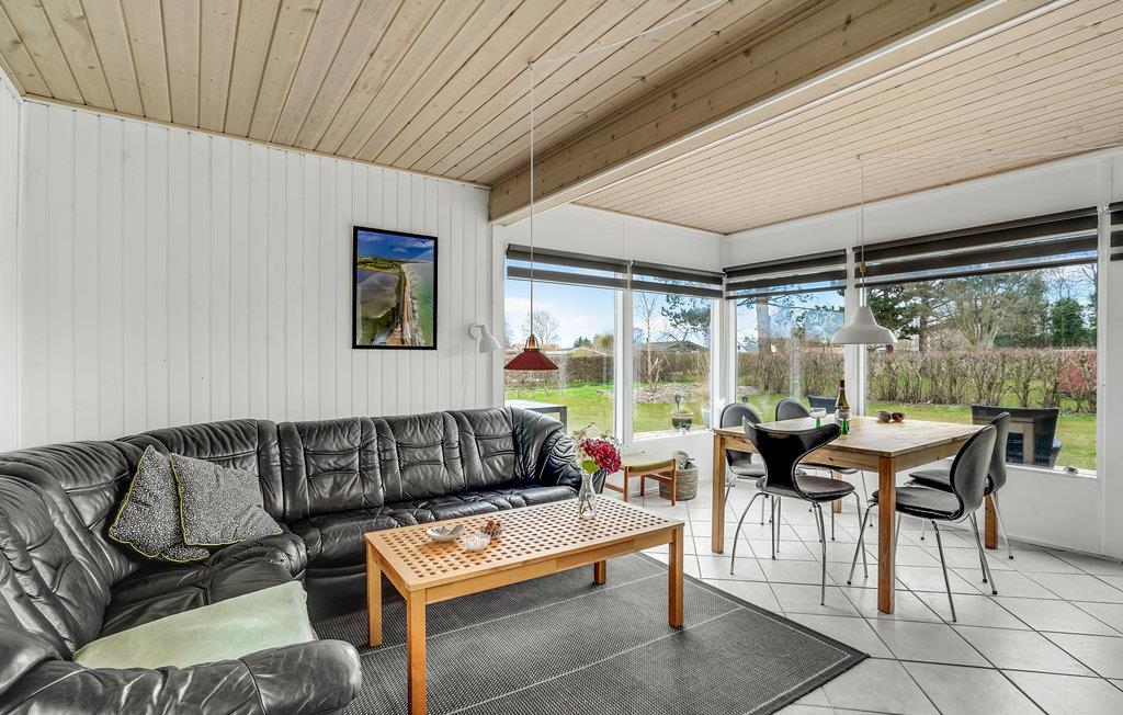 Feriehus tæt på Skovmose Strand med terrasse, brændeovn og adgang til børnevenlig strand.