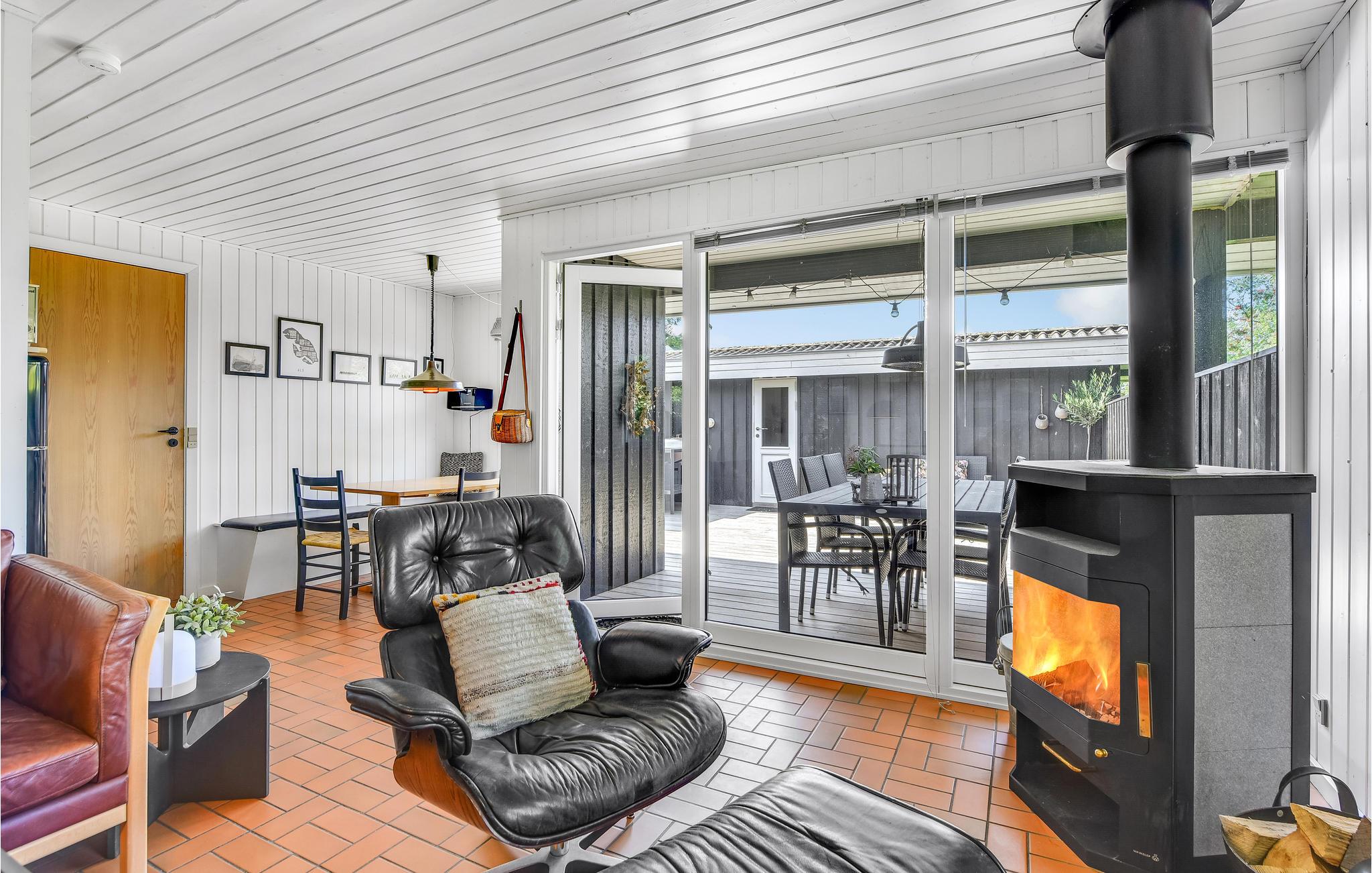 Hyggeligt sommerhus i Skovmose med lukket terrasse og tæt på badestrand, perfekt til afslapning og naturoplevelser.