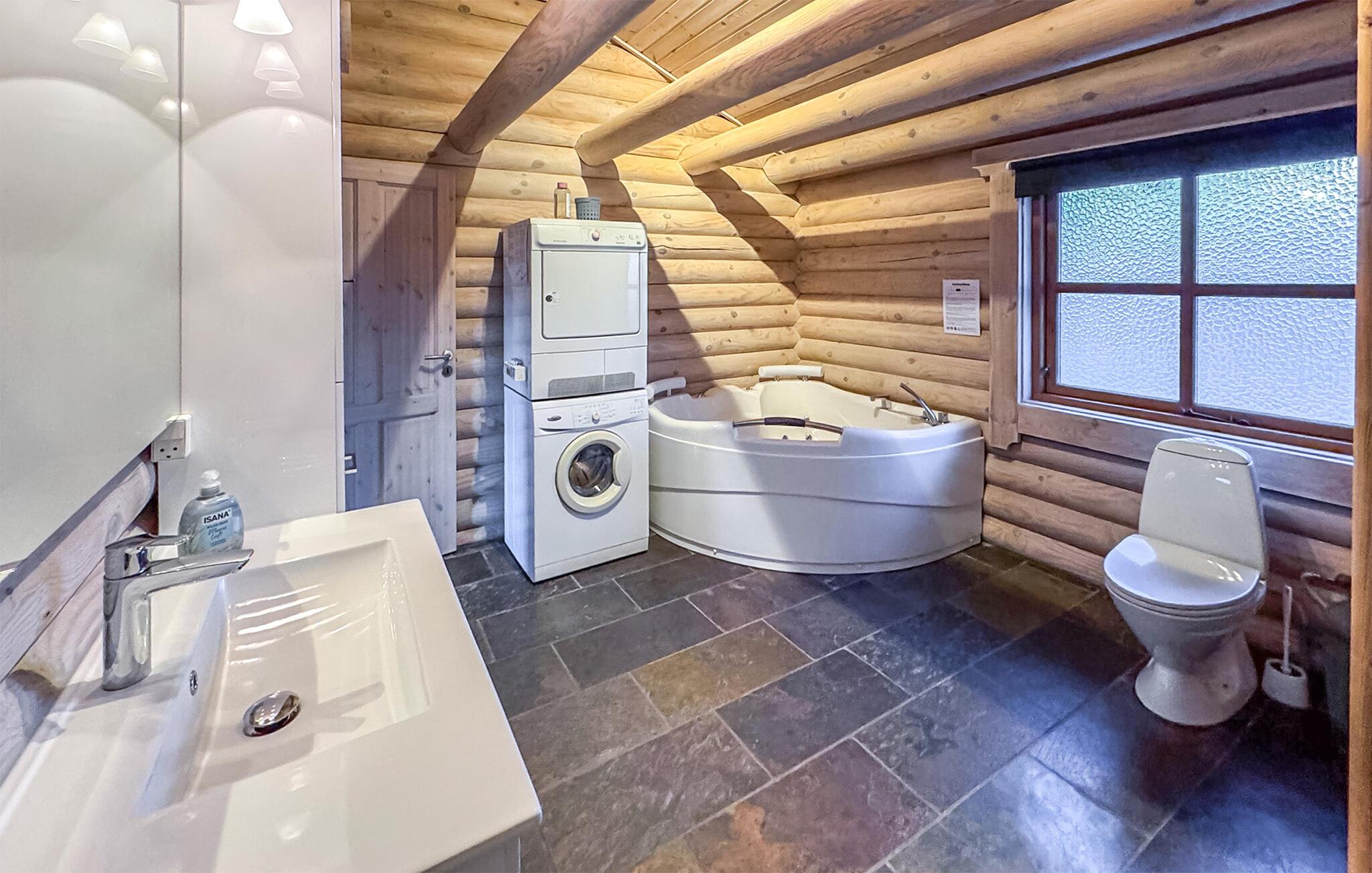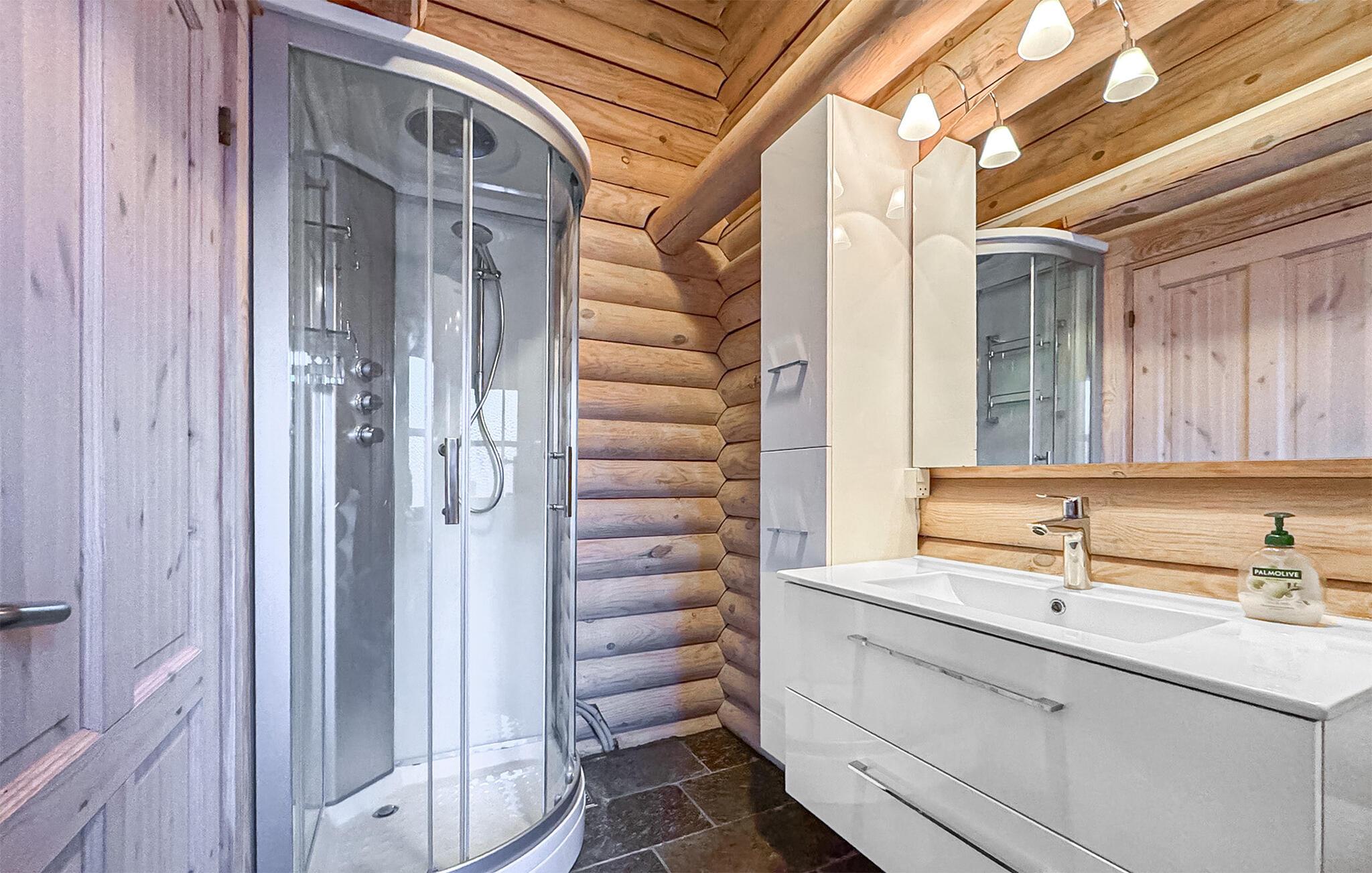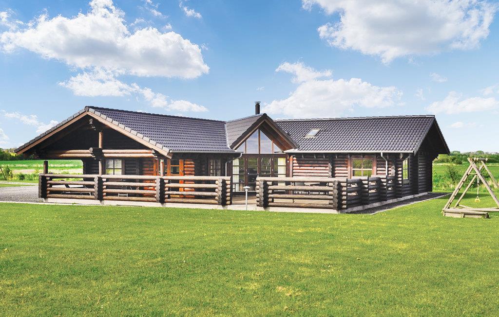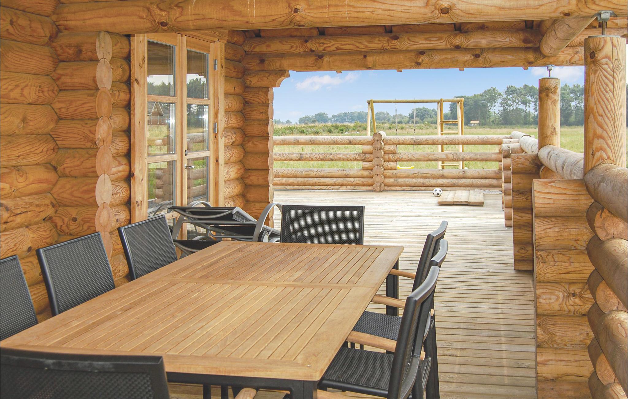 I Skovmose finder man dette sommerhus opført i rundtømmer, som derfor fremtræder meget rustikt med sin egen charme. Den overdækkede terrasse er hyggelig i alt slags vejr. Huset er beliggende ud til grønne områder. Her er taget hensyn til ønsker fra både børn og voksne. Huset råder over alle moderne bekvemmeligheder og har i det store badeværelse adgang til sauna og spa. Huset opvarmes med energivenlig jordvarme. Huset er et godt udgangspunkt for mange oplevelser ved stranden, på landet og i byen.