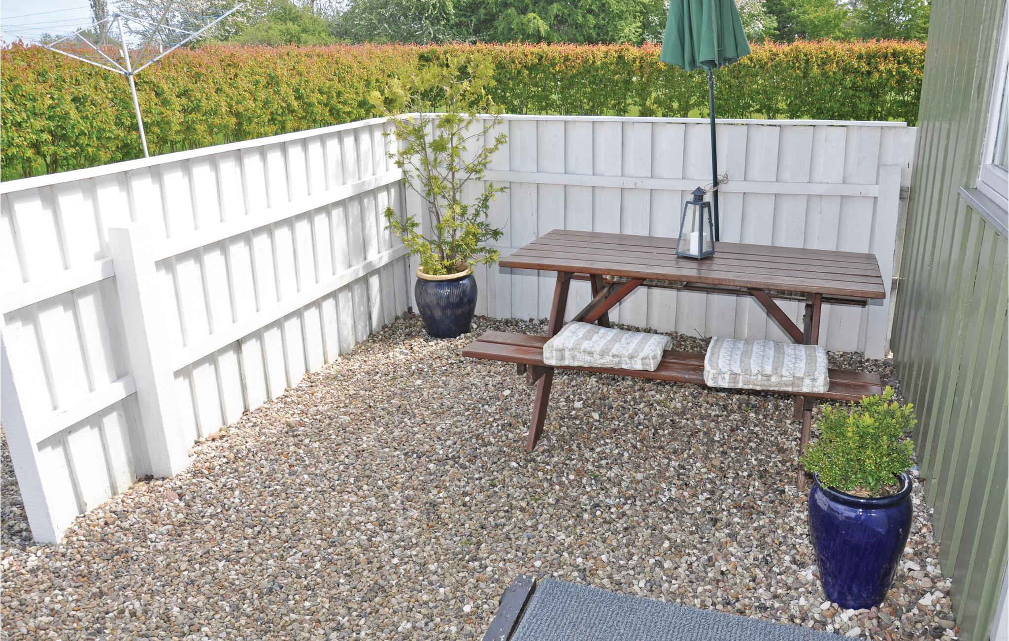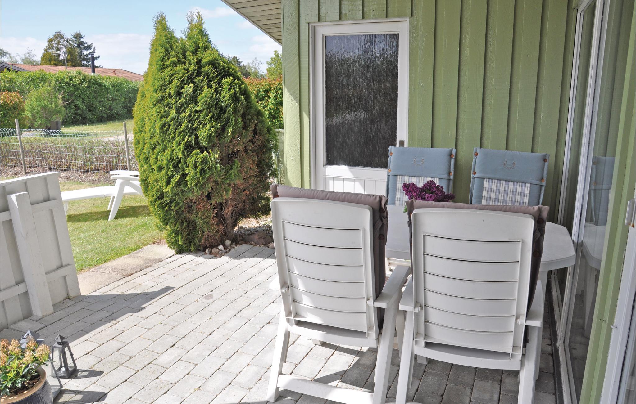 Hyggeligt feriehus i Skovmose med overdækket terrasse tæt på børnevenlig strand og grønne områder.