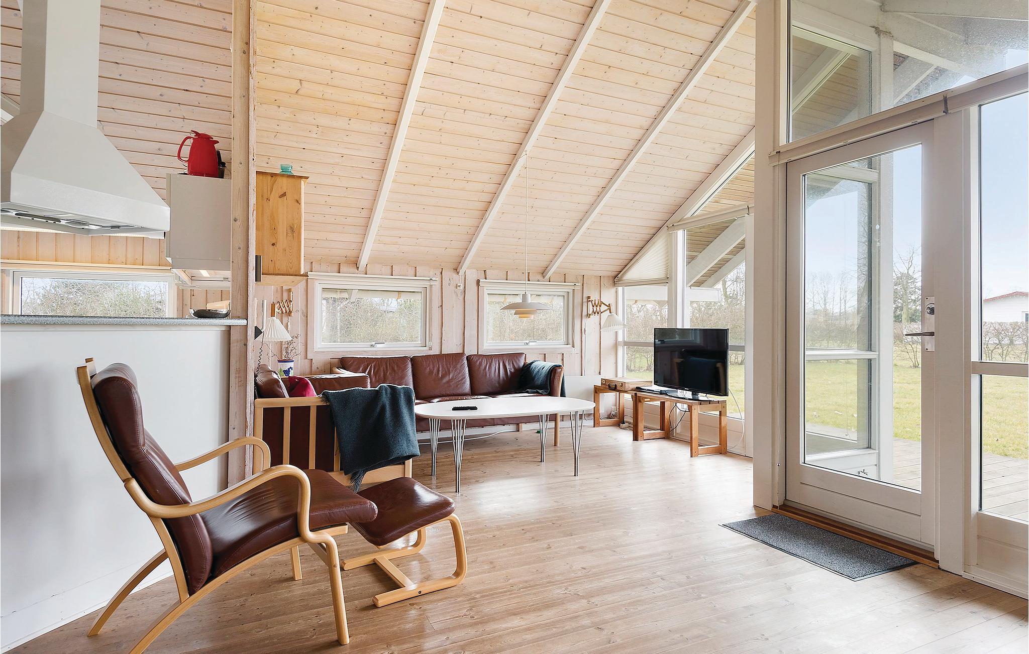 Dette dejlige feriehus er beliggende i det familievenlige område ved Skovmose Strand. Der er kun kort afstand til stranden og Østersøen rene badevand. Husets veludstyrede køkken ligger i åben forbindelse med spiseafdelingen og opholdsstuen. I stuen er der både en brændeovn og en energivenlig varmepumpe, som I kan bruge på de kølige dage og aftener. Over alt i huset kan I bruge den trådløse internetforbindelse. Huset har hele tre soveværelse samt en alkove. Der er to badeværelser. Det ene tilbyder både sauna og spabad.