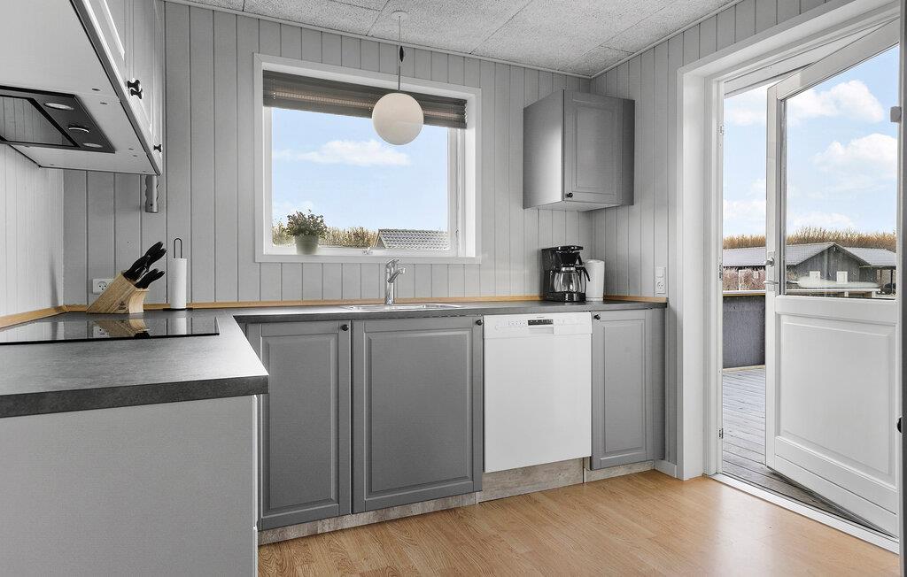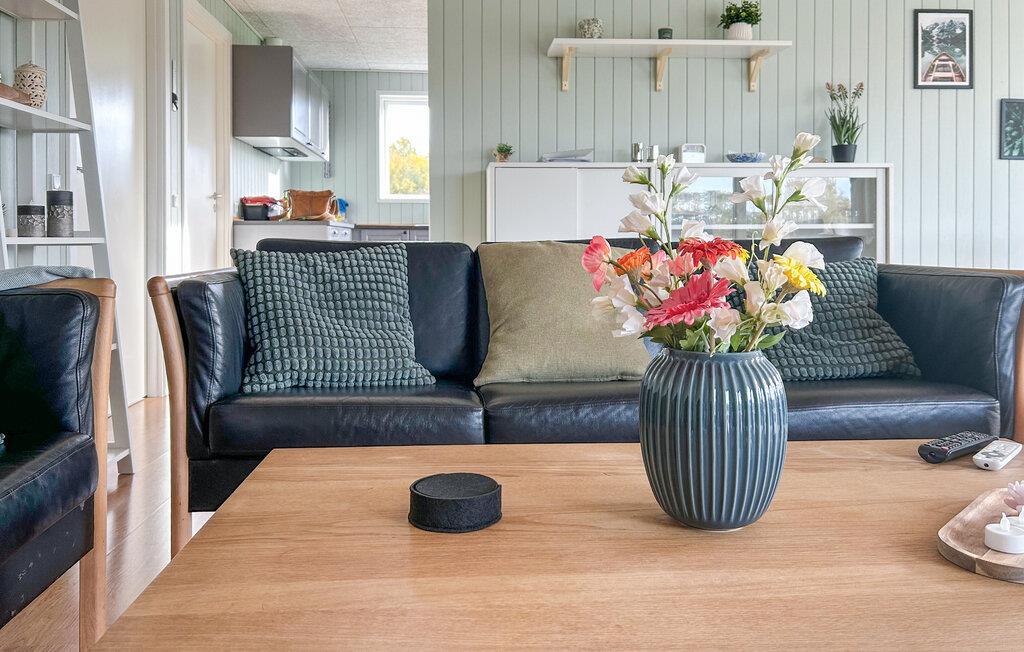 Dette lyse sommerhus er komfortabelt udstyret og har dejlige, lyse rum. Her får I nogle skønne rammer til jeres dage i det sønderjyske, hvor I kun skal koncentrere jer om at gøre det, I slapper af med. Huset emmer af smarte kvalitetsløsninger og lækre detaljer. Den store terrasse følger to sider af huset og er perfekt til solbadning og lækre grillmiddage i aftensolen.