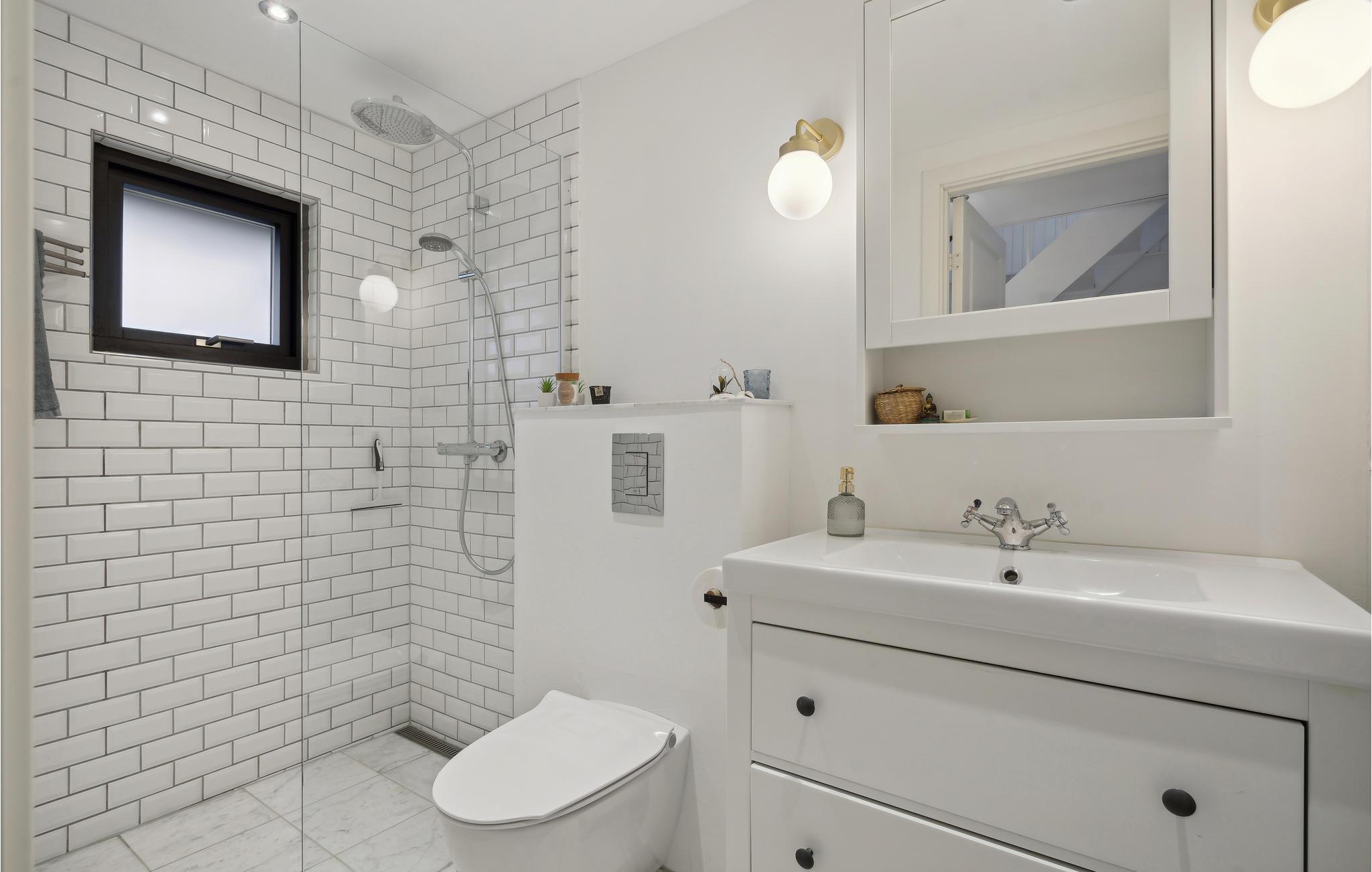 Badeværelse (nr. 1) - WC. Varmt og koldt vand. Bruser