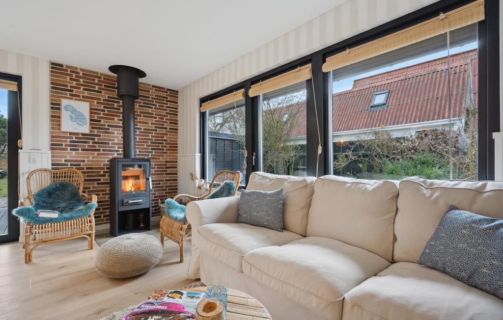 Hyggeligt feriehus med panoramaudsigt og spa nær familievenlig sandstrand på Skovmose Strand.