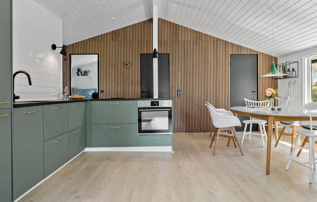 Ved Skovmose Strand på Als' smukke sydkyst ligger dette sommerhus og venter på jer. Her er der alt, hvad I skal bruge for at slappe af og koncentrere jer om at holde fri. Sæt hverdagen på pause og nyd nogle rolige dage med tid til hyggelige aktiviteter. Huset er lyst, moderne og smagfuldt indrettet og har et veludstyret, åbent køkken med god kontakt til livet i stuen. Nyd de æstetiske rammer og de lækre detaljer i fællesrummet, hvor I kan samles om måltiderne, sætte jer til rette med gode bøger eller have det sjovt med et brætspil.