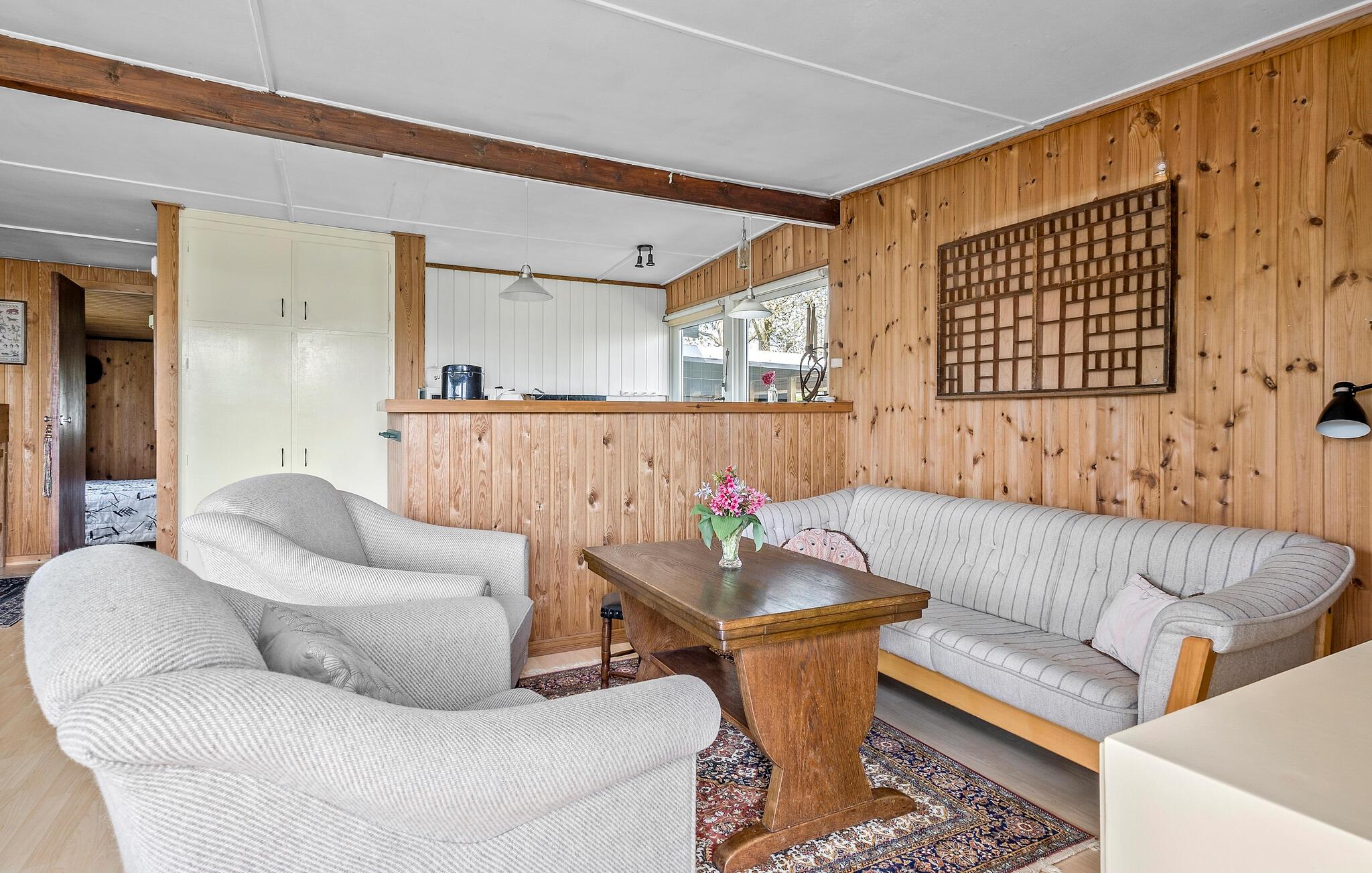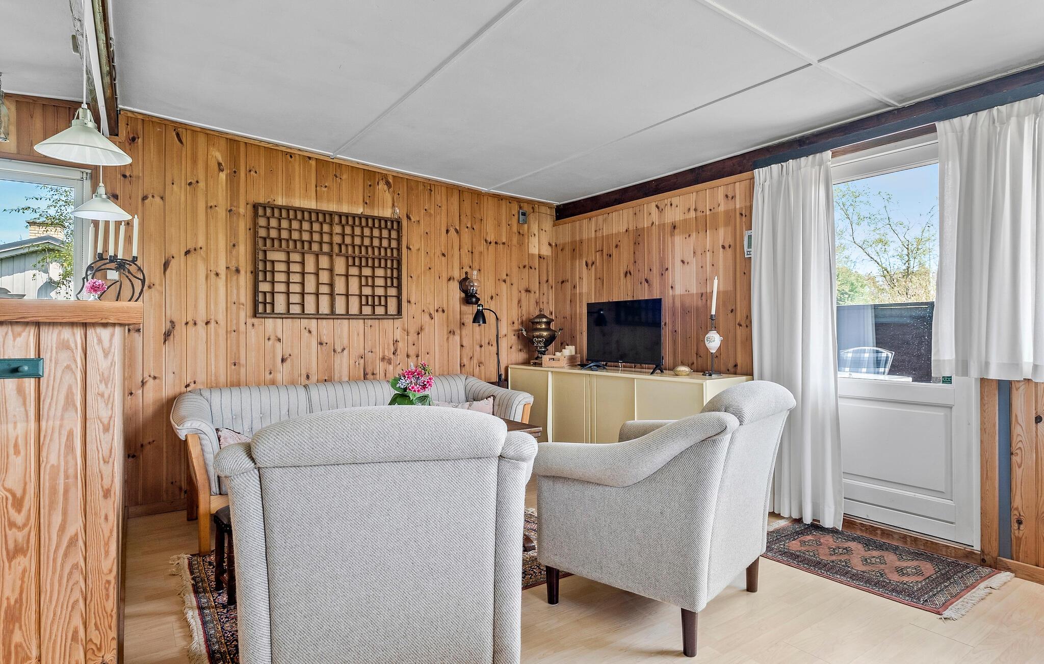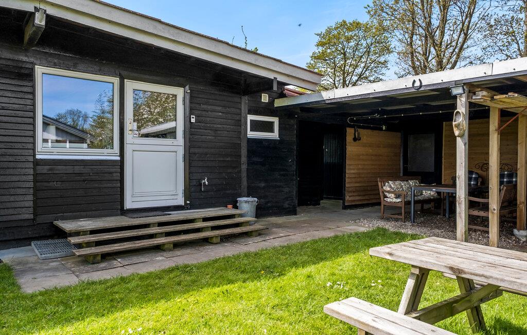 Charmerende træhus tæt på Skovmose Strand med have, brændeovn og moderne faciliteter til en afslappende ferie.