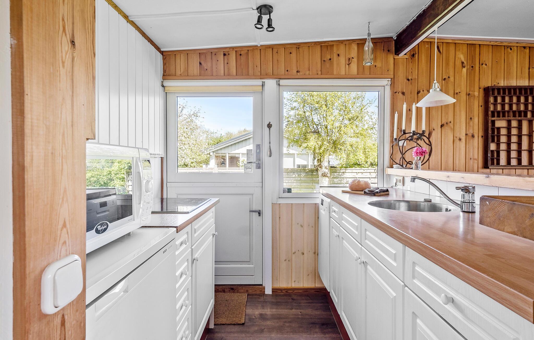 Tag familien under armen og rejs til det sydlige Als, hvor I får en dejlig base i dette indbydende træhus ved Skovmose Strand. Huset byder på enkel komfort og en pæn indretning med træpaneler, gode møbler og en brændeovn, der giver varme og stemning på de lidt køligere dage. Lav noget god mad i køkkenet og nyd livretterne ved spisebordet, inden I runder aftenen af i sofaen med hver jeres bog eller et sjovt brætspil til langt ud på aftenen.