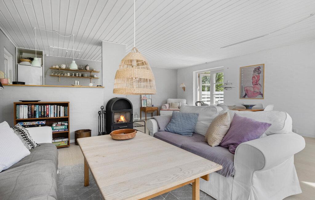 Hyggeligt og familievenligt feriehus tæt på Skovmose Strand med brændeovn og privat have.