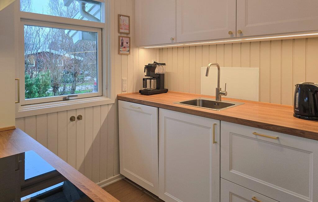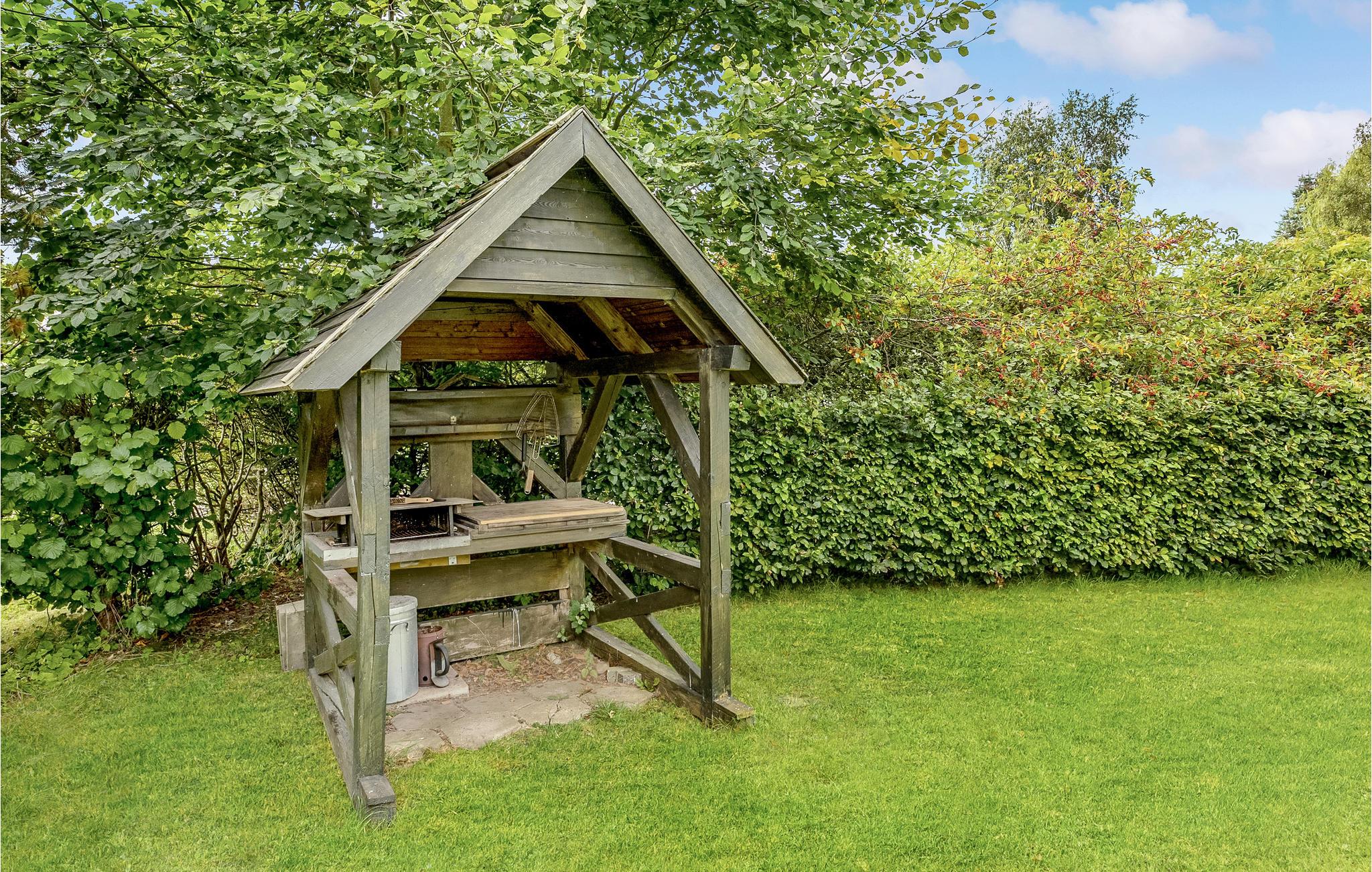 Træd indenfor i husets åbne opholdsrum med store vinduespartier, som lukker lyset dejligt ind fra flere vinkler. Efter dagens oplevelser kan I sætte jer godt til rette i sofaen, mens ilden knitrer hyggeligt i brændeovnen. Spiseområdet har udsigt over terrassen, så I kan nemt rykke udenfor til dagens måltider, hvis solen er fremme, og ellers sidder I med skøn udsigt til haven. I det veludstyrede køkken har I god kontakt til de andre i rummet og har gode rammer til de kulinariske udfoldelser. Huset har også et rummeligt badeværelse med spabad og sauna - her glemmer I hurtigt alt om den travle hverdag.