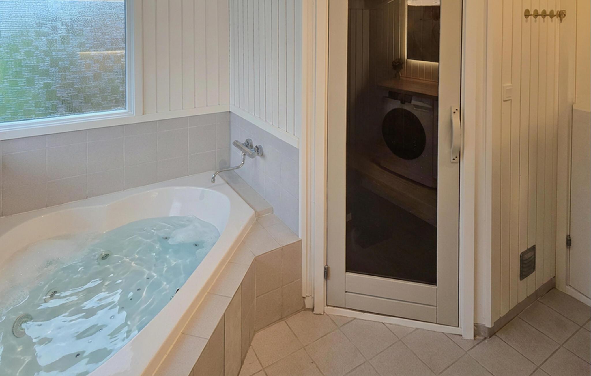 Hyggeligt sommerhus nær Skovmose Strand med sauna, spabad og stor terrasse til afslapning.