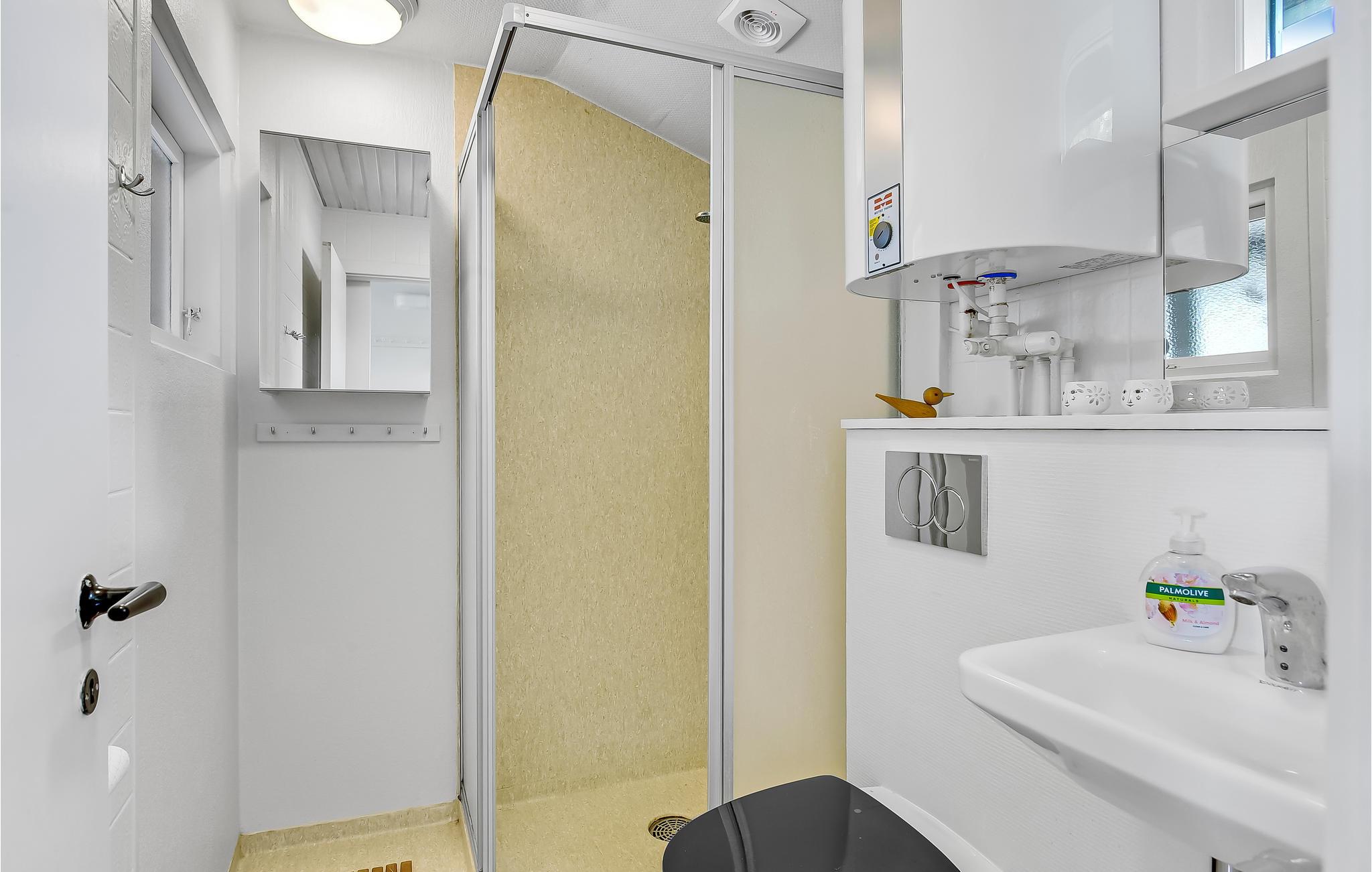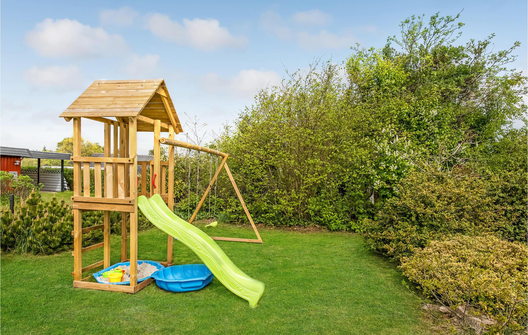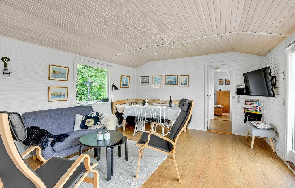 Dette hyggelige feriehus er beliggende i 2. række, kun 100 meter fra vandet. En lille sti fører direkte ned til den dejlige strand og Østersøens rene badevand. Husets moderne og veludstyret køkken ligger i åben forbindelse med spiseafdelingen og opholdsstuen. I stuen er der både en brændeovn og en energivenlig varmepumpe, som I kan bruge på de kølige dage og aftener. Overalt vil I opleve lyse og indbydende rum. Der er også en dejlig havestue, hvor I kan nyde naturen indefra, hvis vejret ikke er til udendørs aktiviteter. Over alt i huset kan I bruge den trådløse internetforbindelse.