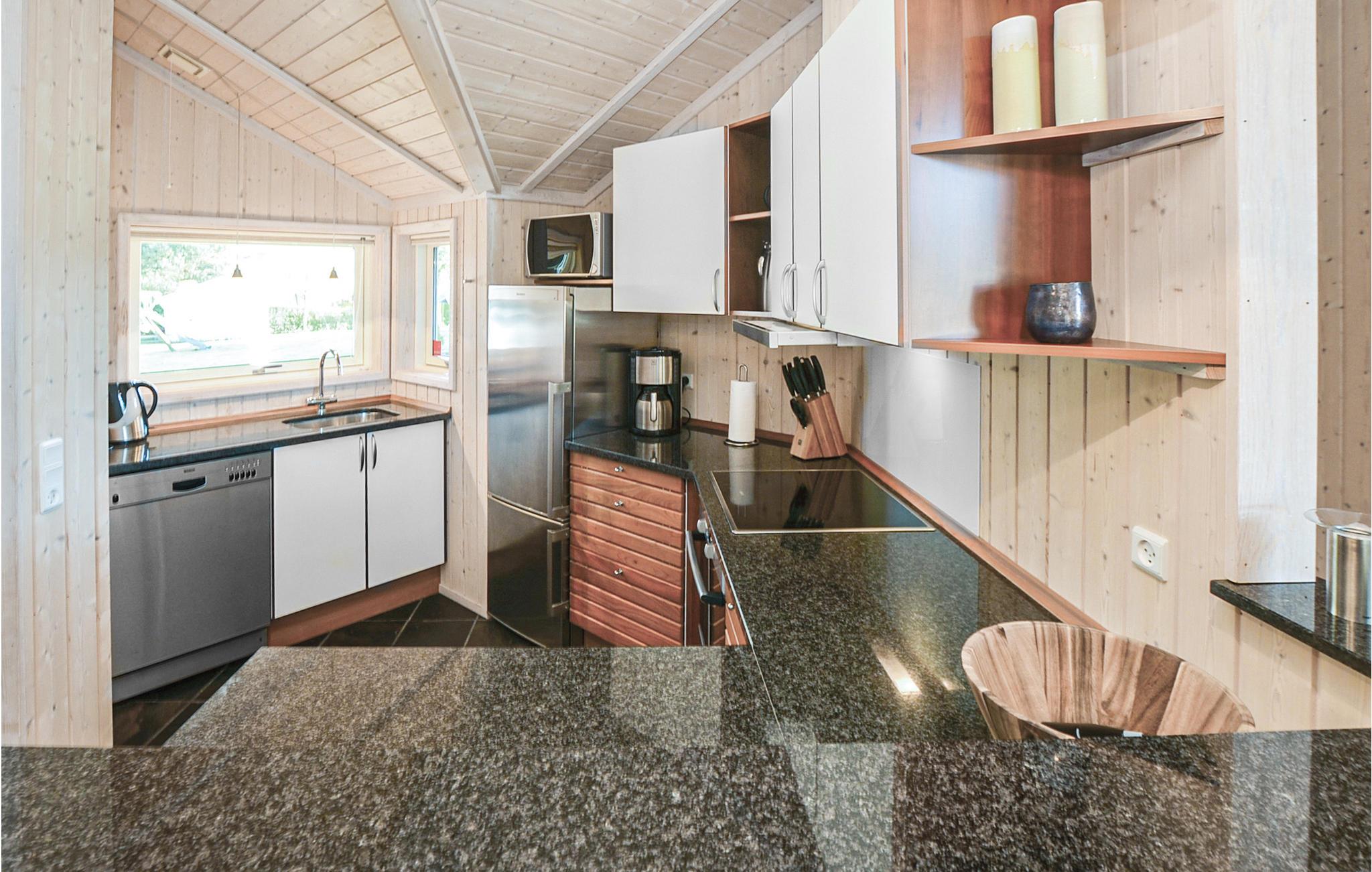 Husets veludstyrede køkken ligger i åben forbindelse med spiseafdelingen og opholdsstuen. I stuen er der både en brændeovn og en energivenlig varmepumpe, som I kan bruge på de kølige dage og aftener. Over alt i huset kan I bruge den trådløse internetforbindelse. Huset har hele tre soveværelse samt en alkove. Det ene badeværelse tilbyder både sauna, spabad og en dampkabine. Til huset hører flere dejlige terrasseområder. Bag huset er en stor solterrasse i sydlandsk stil, lavet af natur sandstensfliser. Her ligger den ugenert og i læ for vinden.