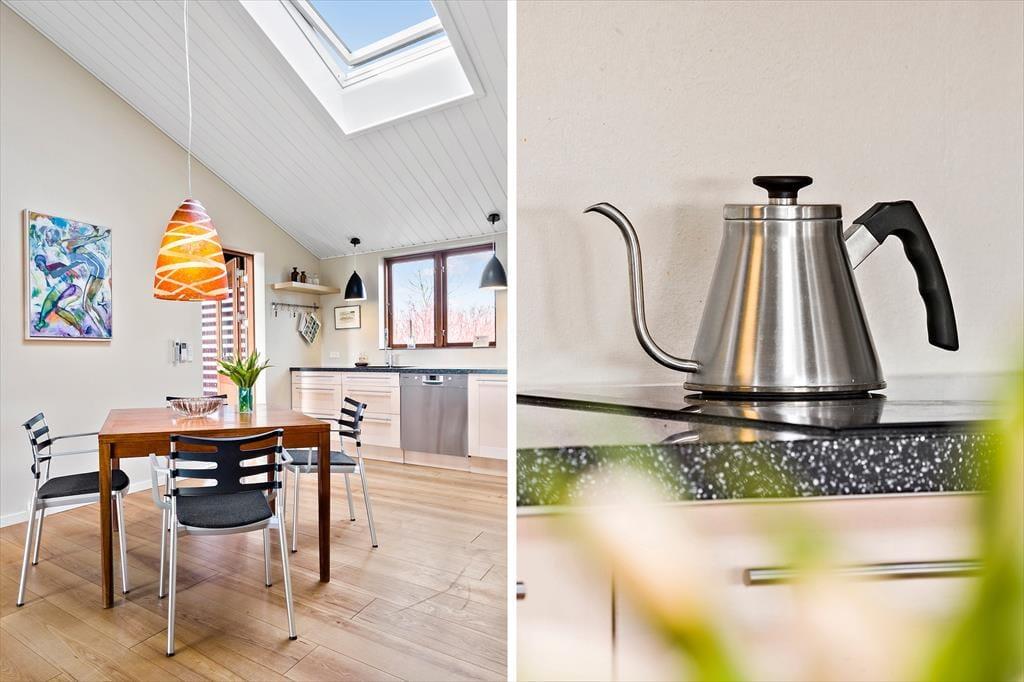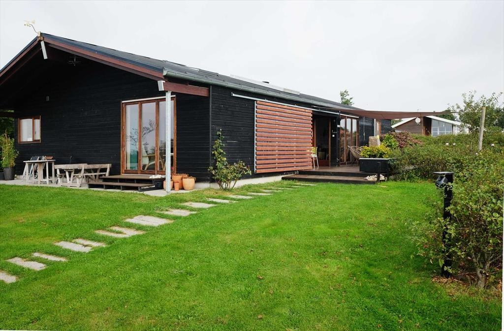 Huset er egnet til helårsbrug og har et lavt energiforbrug i kraft af solceller og god isolering.