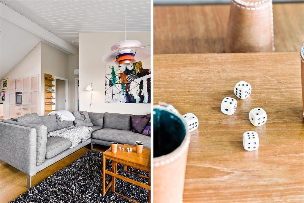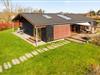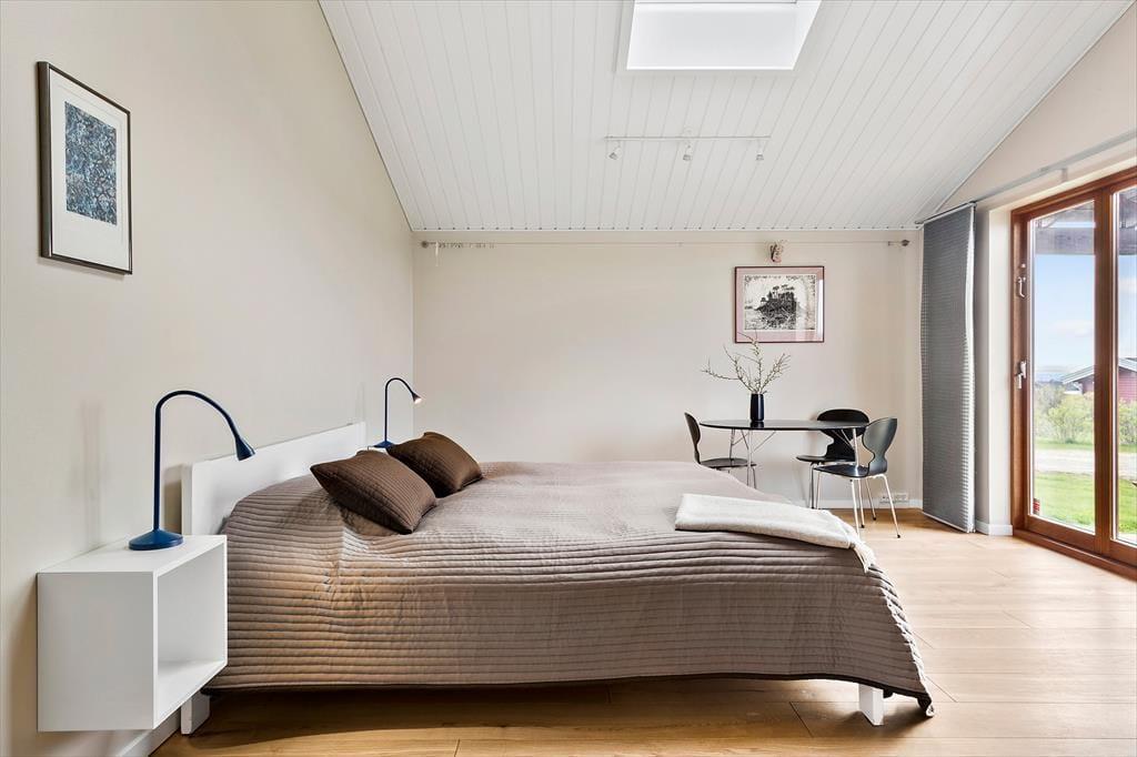 I Skyum Østerstrand er dette luksushus i særklasse. Sommerhuset fra 2011 er to huse forbundet med en overdækket gang med mørkt hårdttræsgulv. Det er først nu kommet til udlejning.