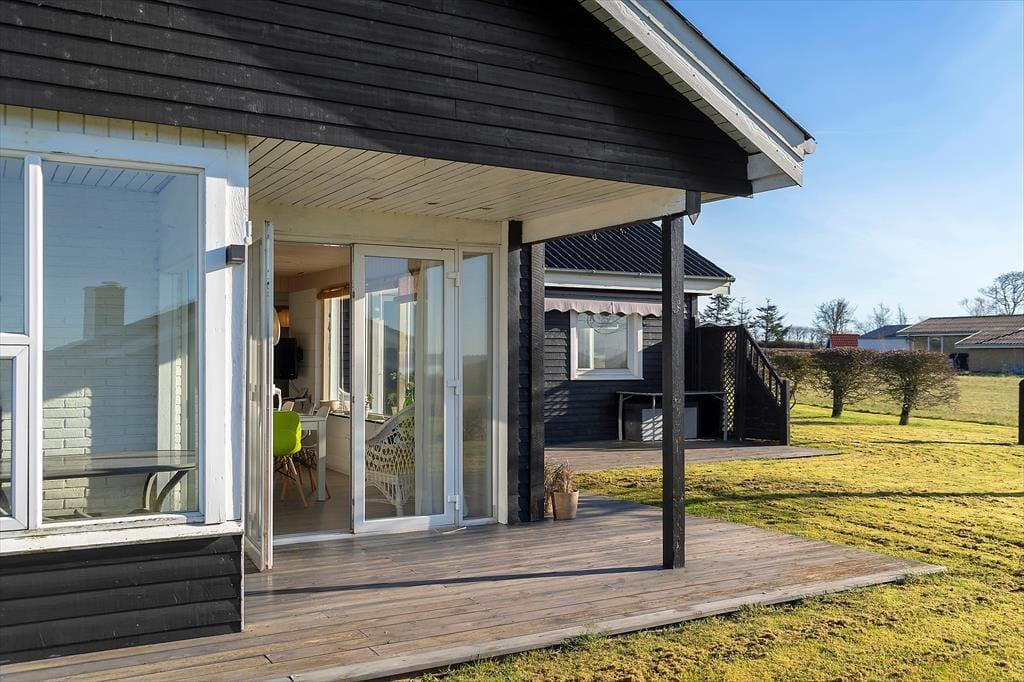 Fjordudsigten er også fin ude fra terrassen på den 625 m2 store grund. Når I ikke nyder livet i havestuen, er det rart at sidde på den overdækkede og afskærmede terrasse, der er udstyret med en udendørs pejs, og derudover er der flere åbne terrasseområder, som indbyder til solbadning og grillmiddage under åben himmel.
