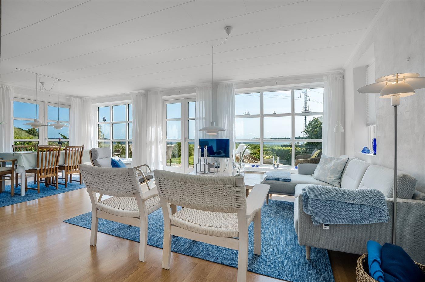 Skønt sommerhus i Gudenæsstrand med fantastisk udsigt over Limfjorden og hyggelige udendørsarealer.