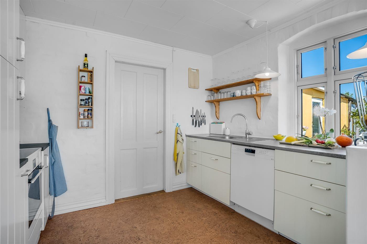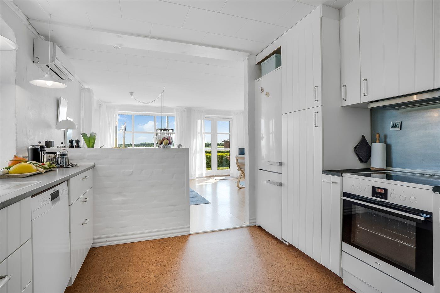 Køkkenet er udstyret med 1 køleskab. Der er 4 keramiske kogeplader, varmluftovn, mikrobølgeovn samt opvaskemaskine.