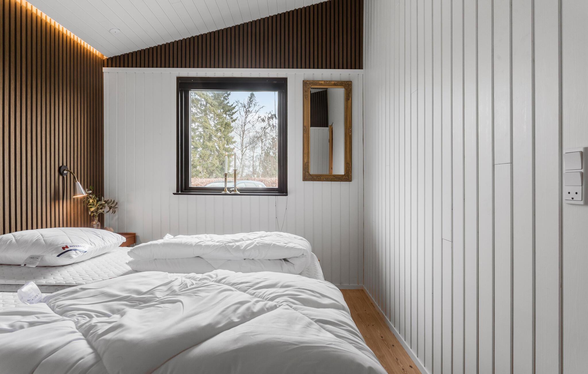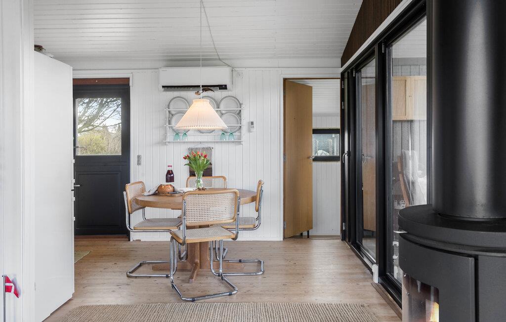I dette indbydende træhus får I den helt ideelle ramme for en skøn familieferie. Huset er nydeligt indrettet med flotte, kontrasterende farver, der sammen med det rustikke strejf og gode møbler gør det nemt at sænke farverne og fylde dagene op med klassisk feriehygge. Tænd op i brændeovnen på de køligere dage og lad kokkene kræse om livretterne i det veludstyrede køkken, mens andre lægger puslespil ved spisebordet eller læser en god bog. Efter aftensmaden kan I rykke over i sofaen med lækre snacks og se en god film, mens I lægger planer for de kommende dage.