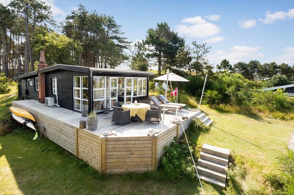 Huset ligger på en dejlig naturgrund med masser af plads og en smuk udsigt over havet. Området omkring huset er indhegnet, så der er mulighed for at slappe af i ro og mag. De skønne terrasser inviterer dig til at nyde både solopgangen og solnedgangen – og hvad er mere afslappende end at sidde med en kop kaffe og lytte til havets brusen? Her er både grill og bålplads til at skabe hyggelige stunder med hele familien. Du vil opleve en ro og stilhed, der lader dig koble helt af fra hverdagens travlhed.