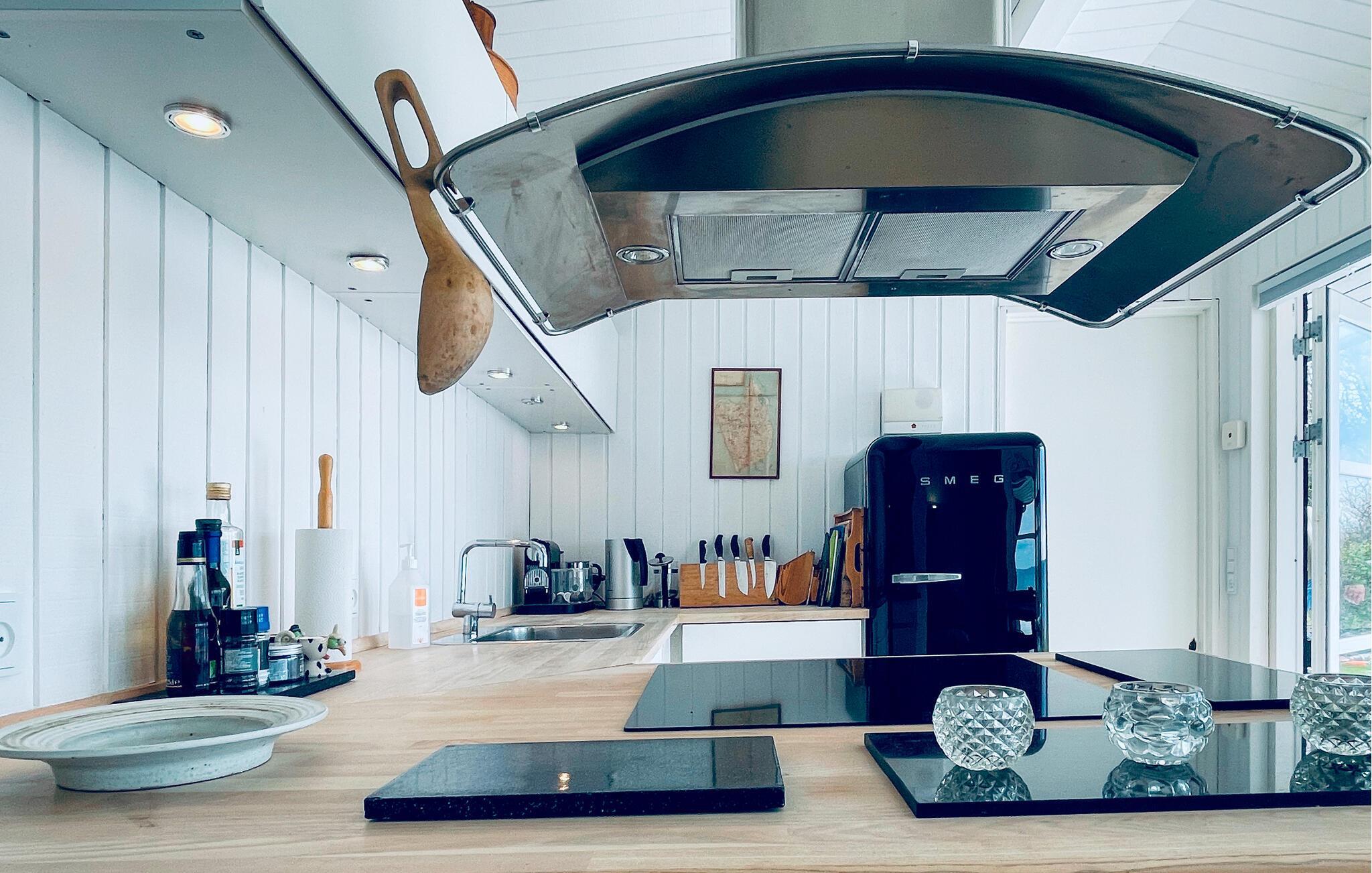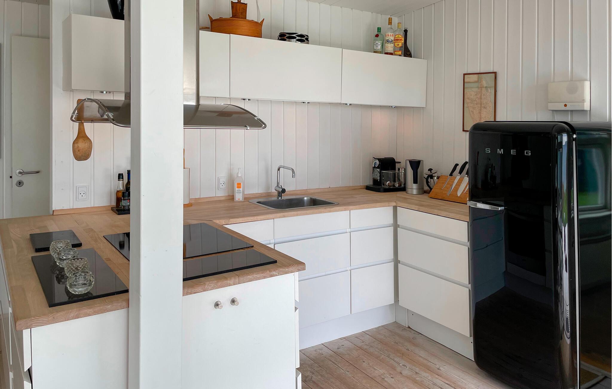 Fordyb jer i den stilfulde stemning i det moderne interiør, som venter jer med et fuldt udstyret køkken, en indbydende spiseplads og en hyggelig stue. Nyd afslappende timer foran pejsen, bliv inspireret af den store vinduesfront med udsigt over havet eller tilbring hyggelige aftener med familie og venner.