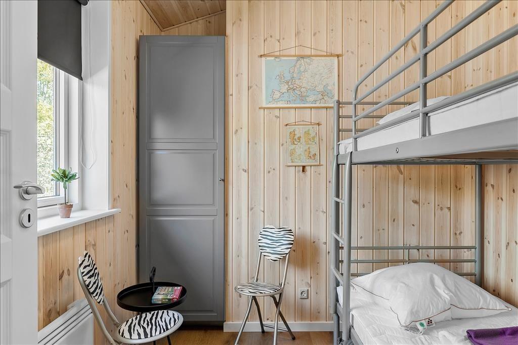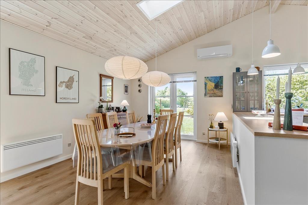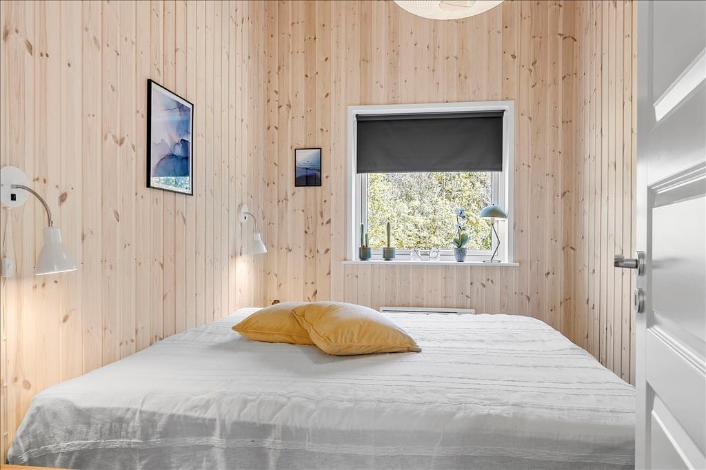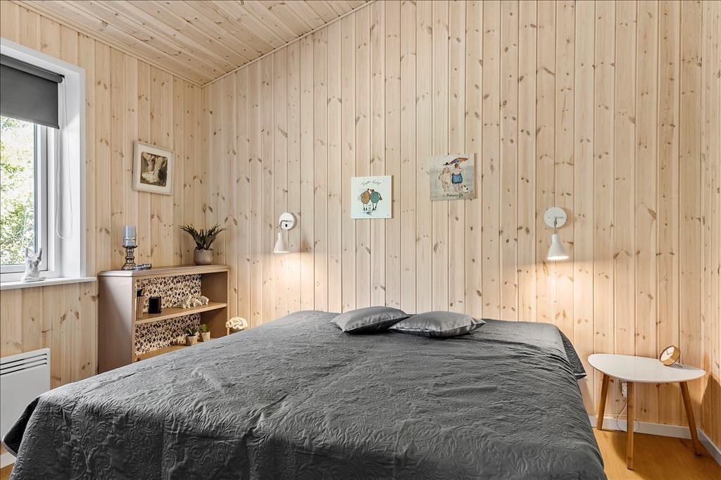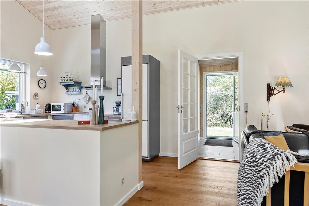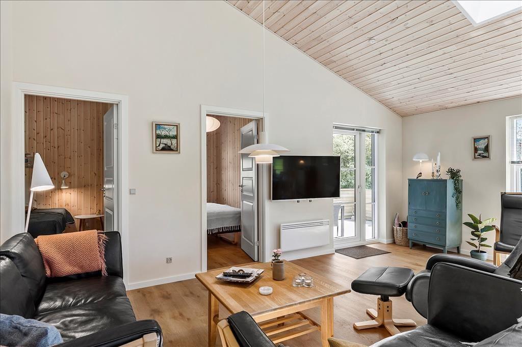 Det 100 m2 store sommerhus er opført i 2021, og som et byggeri af høj kvalitet giver det jer en særdeles skøn og stemningsfuld ramme om ferielivet. Stuen er et herligt opholdsrum med flotte gulve, ovenlysvinduer og store vinduer vendt mod tre verdenshjørner. Det åbne køkken passer godt ind i rummet – og så er det rart, at man kan stå for madlavningen, mens man fortsat tager del i hyggen med resten af familien. To af husets soveværelser er udstyret med komfortable dobbeltsenge, mens det tredje byder på en køjeseng, og på det stilfulde badeværelse er der gulvvarme og glasbruseniche med rainshower.