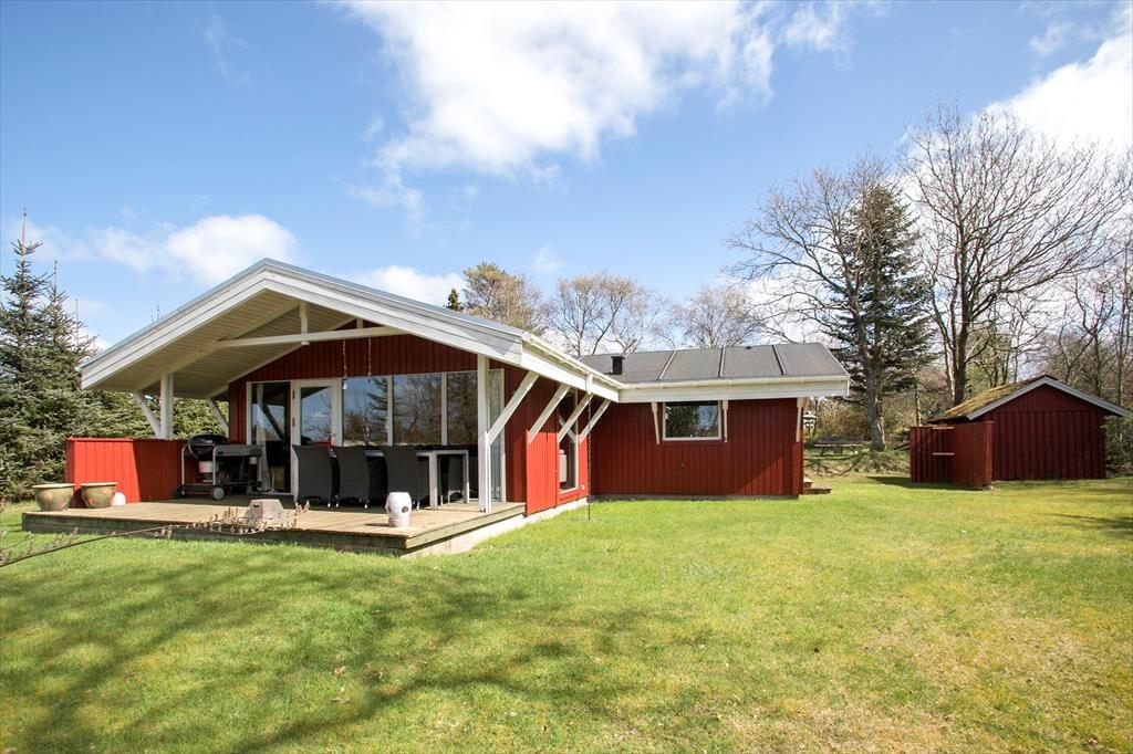 Udenfor venter en stor naturgrund, hvor den friske luft og fuglesangen virkelig sætter rammerne for den ægte danske sommerhusidyl. I kan tilbringe de varme dage på terrassen, hvor havemøblerne står klar til afslappende måltider i solskin og lange, lyse sommeraftener. Her er også god plads til både leg og boldspil på grunden og den omkransende natur skaber en privat og ugeneret atmosfære – et perfekt sted til feriehygge for hele familien.
