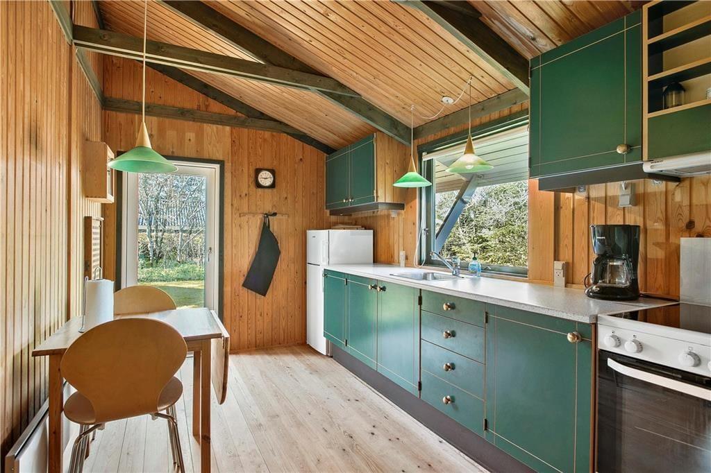 Bag husets hyggelige ydre finder I en varm og indbydende atmosfære, hvor alt er indrettet til at skabe en stemning af ren afslapning. Stuen er lys og indbydende med klassisk sommerhuscharme, hvor træbeklædning og den knitrende brændeovn sætter scenen for hyggelige stunder med en kop varm kakao på en kølig aften. I det åbne køkken kan I samles om madlavningen og skabe gode minder sammen, og når dagen går på hæld, er der gode soveværelser til ro og afslapning. Badeværelset er både praktisk og pænt, og det er med til at sikre, at I får en behagelig og nem ferieoplevelse.