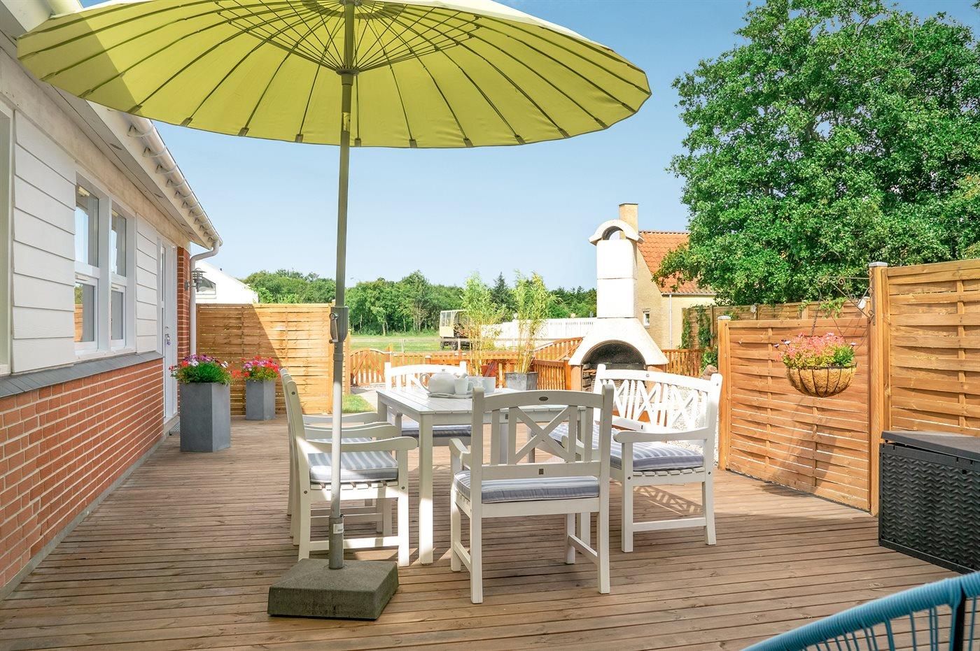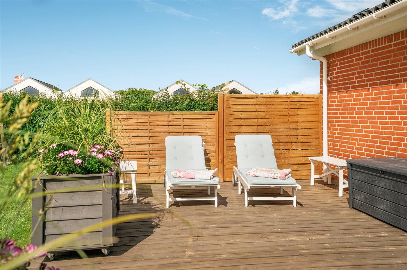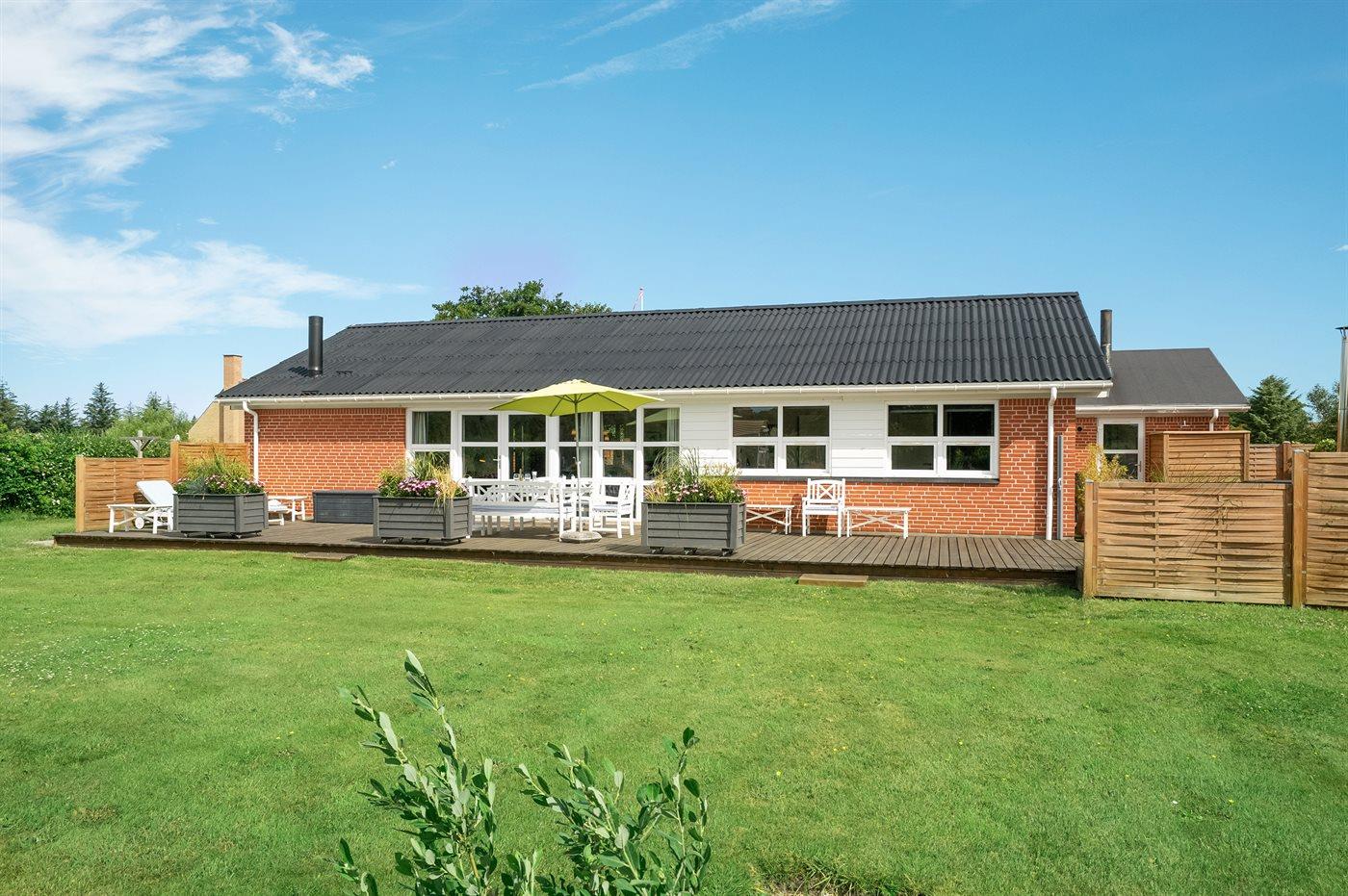 Ferieboligen er beliggende på en 1190 m² stor havegrund. Grunden er indhegnet. Der er 600 m til havet. Nærmeste forretning er beliggende i en afstand af 2500 m. Der er en golfbane i en afstand af 10000 m. Til ferieboligen hører 200 m² terrasseareal. Gynge. Sandkasse. Trampolin. Rutchebane. Vippegynge. Petanque. Fodboldmål. Bålsted. Udendørs bruser. På lune aftener sørger en udendørs pejs for hyggelig stemning. Der er carport til rådighed. Der er installeret stik til opladning af elbil. CEE stik. Parkering ved ferieboligen.