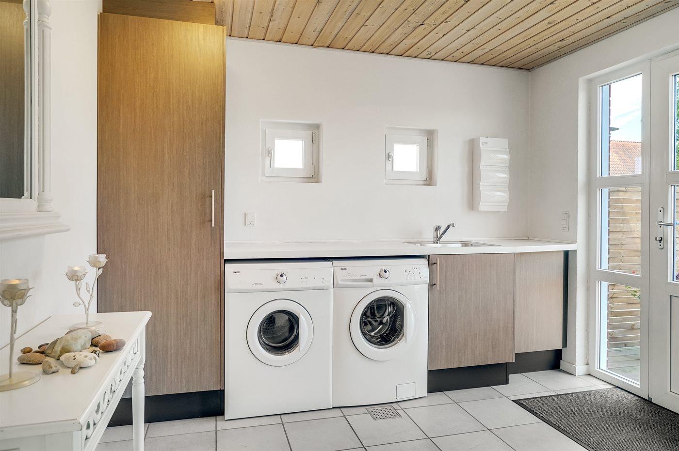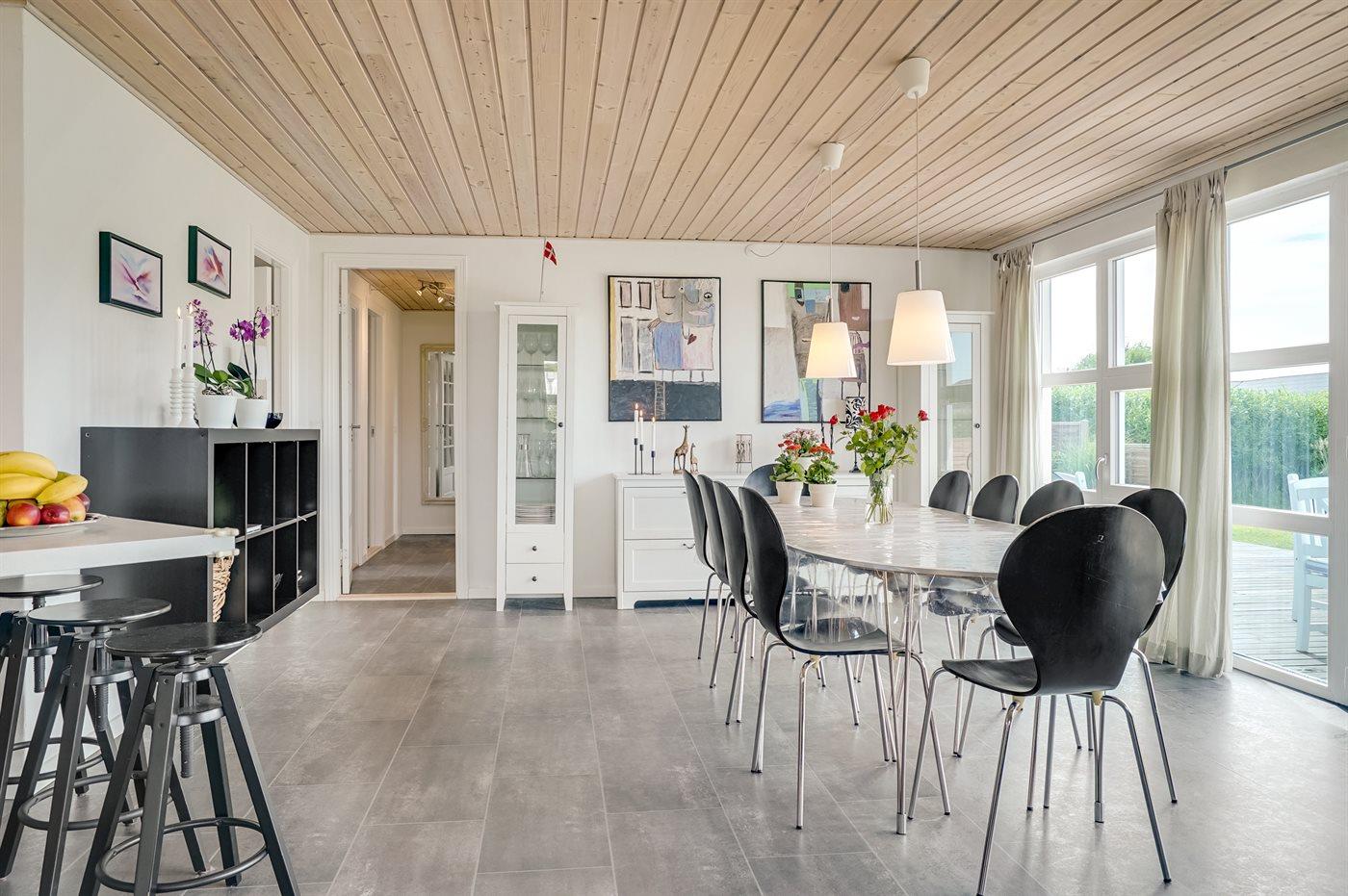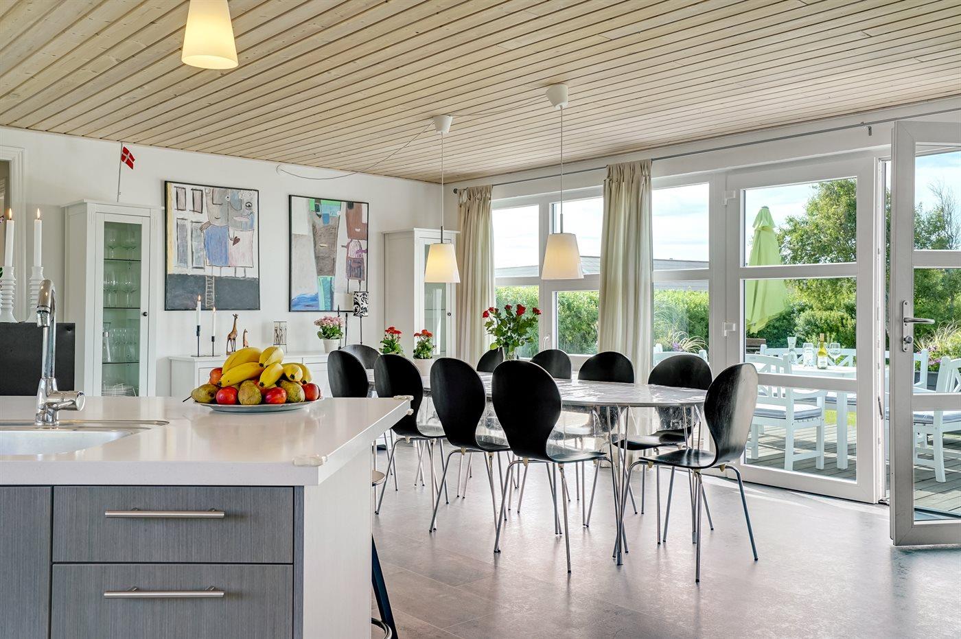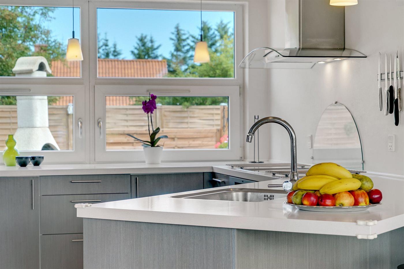 Køkkenet er udstyret med 1 køleskab. Der er 4 keramiske kogeplader, varmluftovn, mikrobølgeovn samt opvaskemaskine.