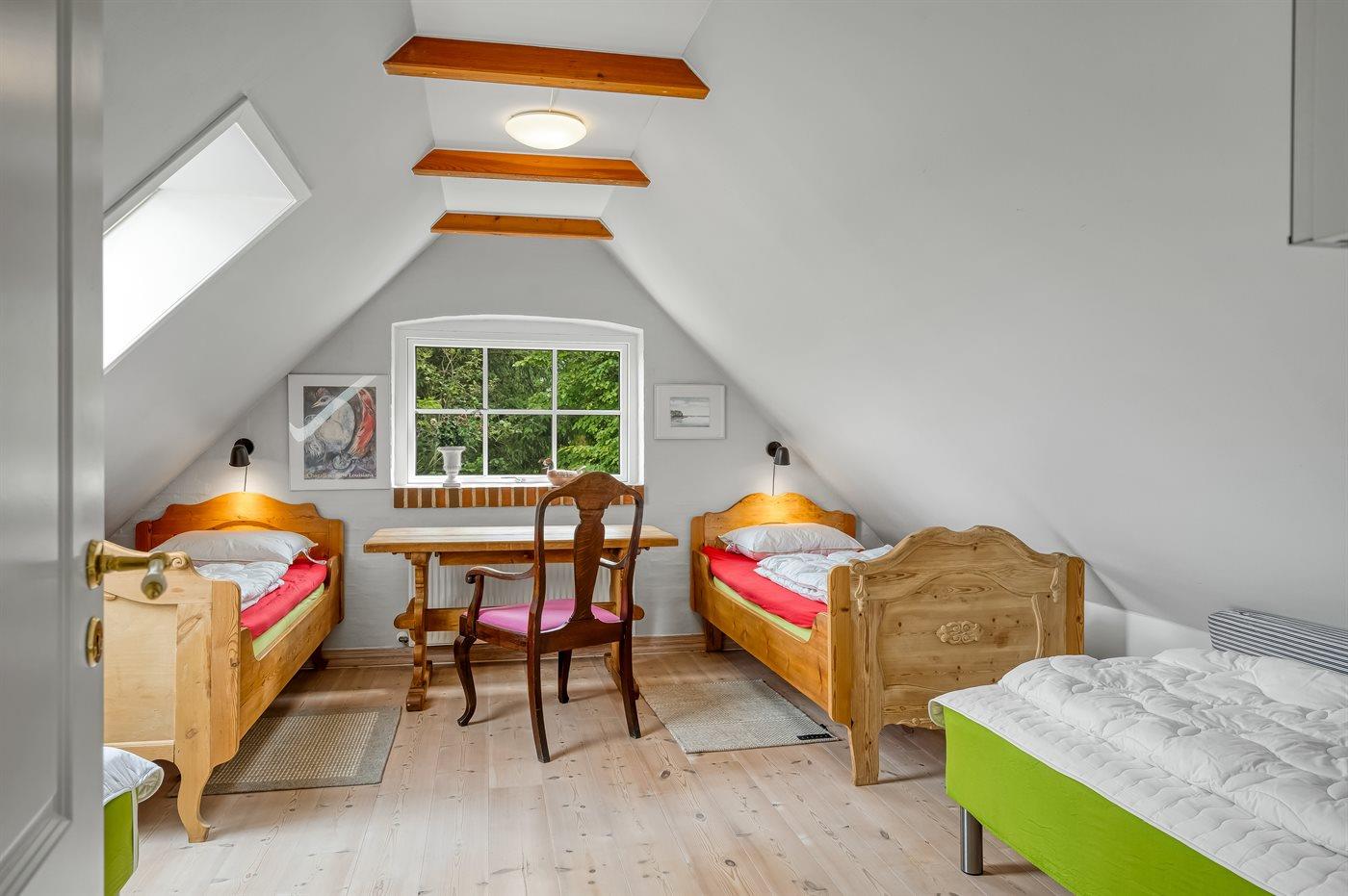 Der er i alt 2 soveværelser. Sovepladserne fordeler sig på: 4 sovepladser i dobbeltsenge. 4 sovepladser i enkeltsenge. 2 af disse sovepladser befinder sig i et anneks. Derudover er der 1 stk. barneseng.
