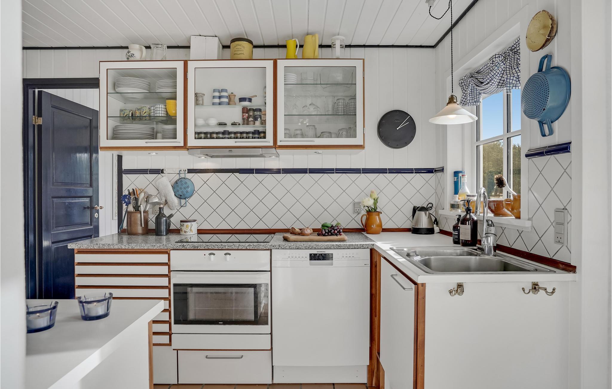 Glæd jer til en skøn ferie ikke langt fra havet. I vil hurtigt føle jer hjemme i det lyse og indbydende feriehus. Det veludstyrede hus tilbyder jer alt, hvad I har brug for til at slappe af og nyde tiden sammen. Slå jer ned i den indbydende stue for at lege, spise og varme jer ved brændeovnen. Fra sofaen kan I også se ud over landskabet med en kop te og nyde roen fra sofaen. Derudover tilbyder terrassen jer et dejligt sted at opholde jer i sommermånederne. Indtag jeres måltider her og læg planer for de kommende dage.