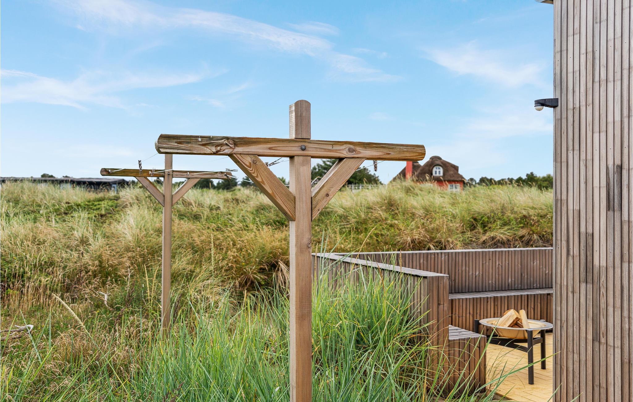 I får en flot ramme om jeres ophold ved Vesterhavet med base i dette hus. Her venter der nemlig en arkitektur, som er helt særlig, og hvor lækre indretningsdetaljer dukker op i hvert nyt rum, I går ind i. Udendørs fortsætter herlighederne, for her bliver I placeret midt i Slette Strands enestående natur. Sæt jer på terrassen og nyd grillmaden med udsigt til de vidunderlige omgivelser eller sæt jer med en god bog, mens I lytter til naturens lyde. Efter nogle timer på stranden er det herligt, at man kan skylle strandsandet af under udendørsbruseren.
