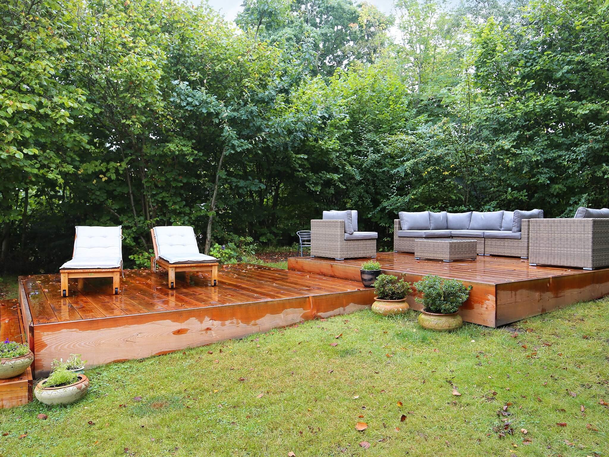 Og: Terrasse, overd. terrasse, garage, el-varme, luft/luft varmepumpe, havegrill, anlagt have 1378 m2, moderne møblering, sommerhusområde, ikke-ryger hus