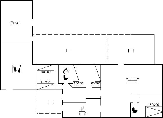 Der er i alt 3 soveværelser. Sovepladserne fordeler sig på: 2 sovepladser i dobbeltseng. 4 sovepladser i enkeltsenge.