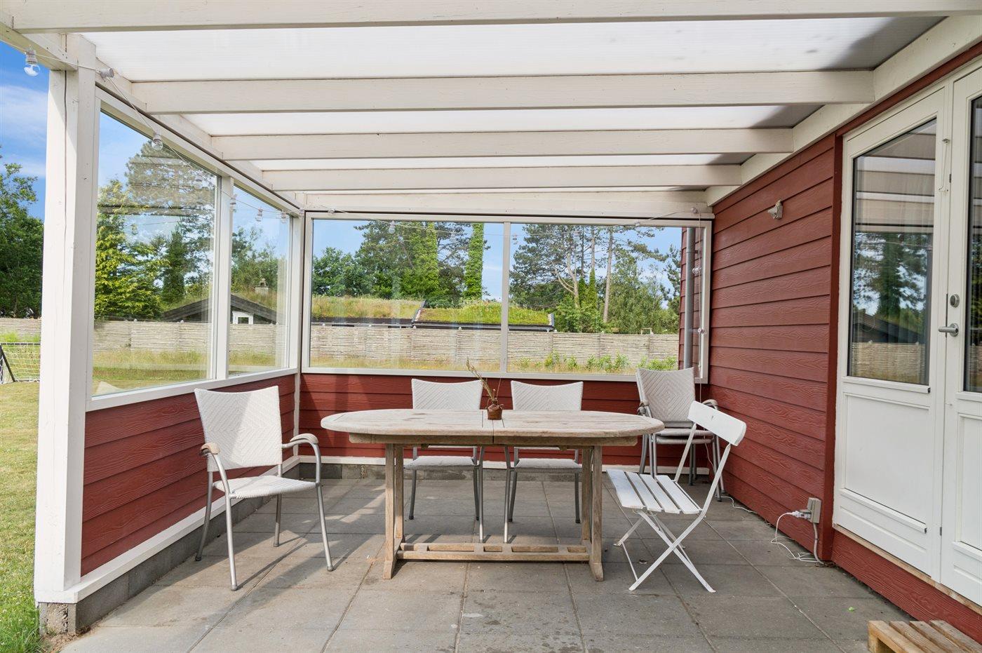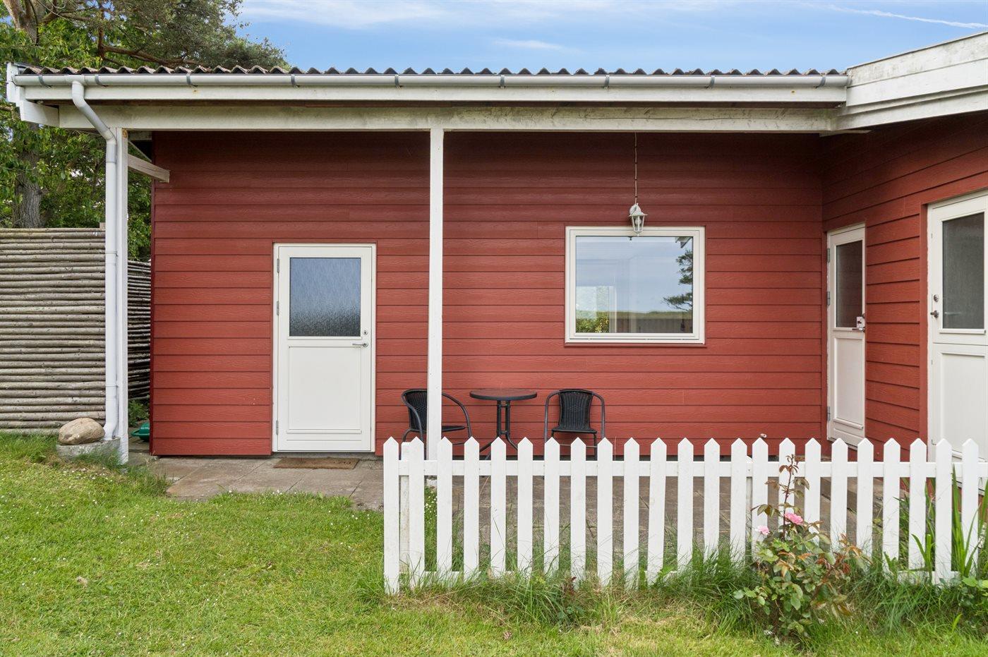 Ferieboligen er beliggende på en 1875 m² stor havegrund. Der er 100 m til havet. Nærmeste forretning er beliggende i en afstand af 1000 m. Til ferieboligen hører åbent terrasseareal. Desuden er der overdækket terrasse. Gynge. Trampolin. Fodboldmål. Bålsted. Grill til rådighed. Parkering ved ferieboligen.