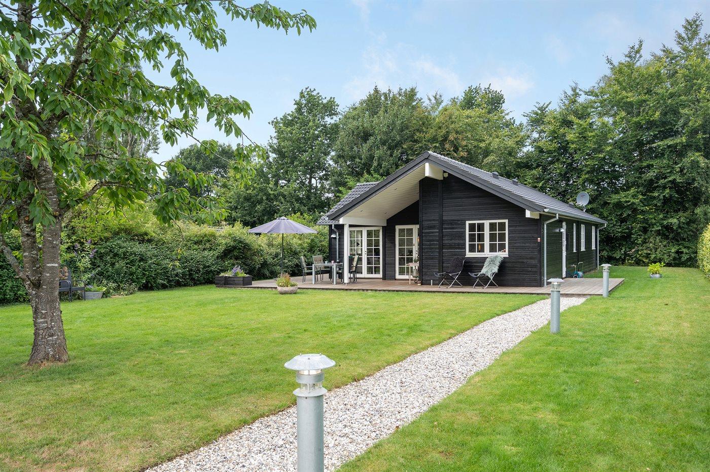 Dette kvalitetssommerhus er beliggende for enden af en lukket vej i rolige og ugenerte omgivelser. Her kan børnene trygt færdes i den velplejede have og på vejen.