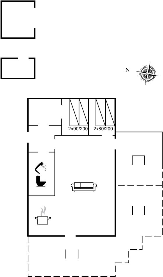 Der er 1 badeværelse med bruseniche og 1 toilet.
