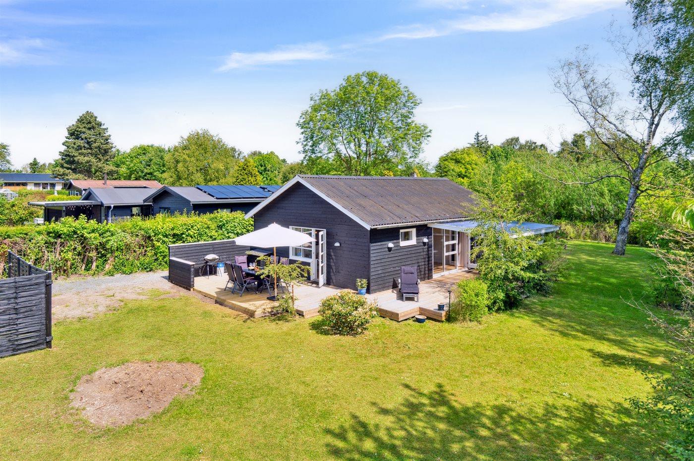 Ferieboligen er beliggende på en 1200 m² stor havegrund. Der er 850 m til havet. Nærmeste forretning er beliggende i en afstand af 700 m. Til ferieboligen hører åbent terrasseareal. Desuden er der overdækket terrasse. Grill til rådighed. Parkering ved ferieboligen.