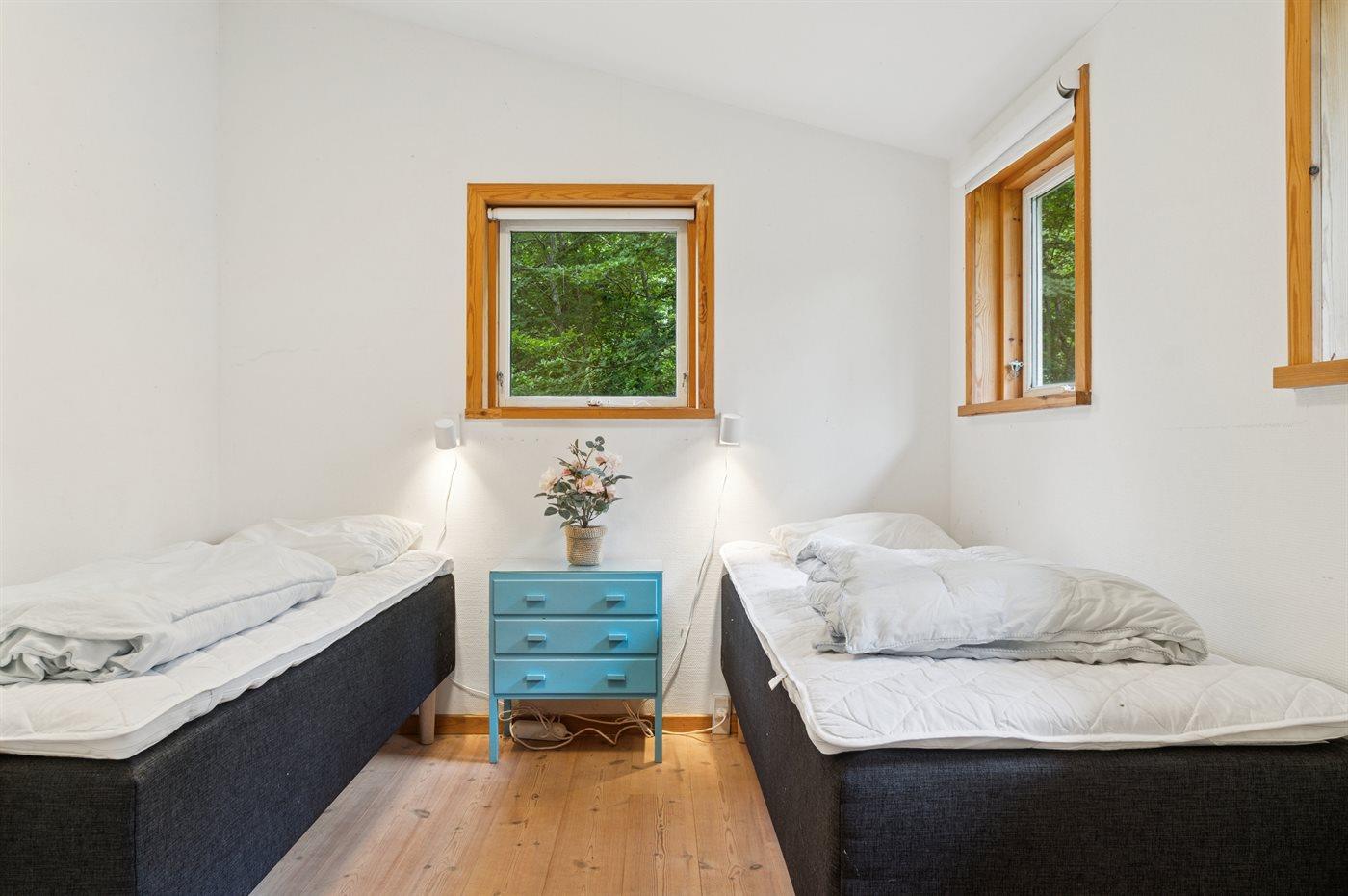 Der er i alt 4 soveværelser. Sovepladserne fordeler sig på: 2 sovepladser i dobbeltseng. 5 sovepladser i enkeltsenge.