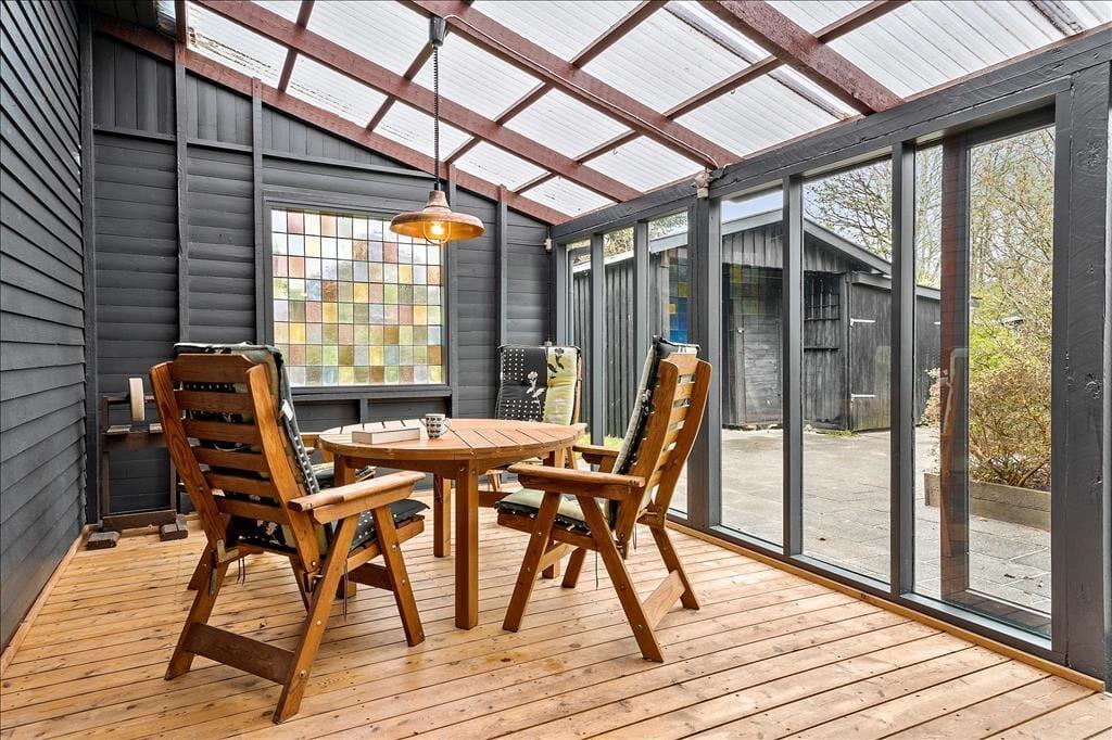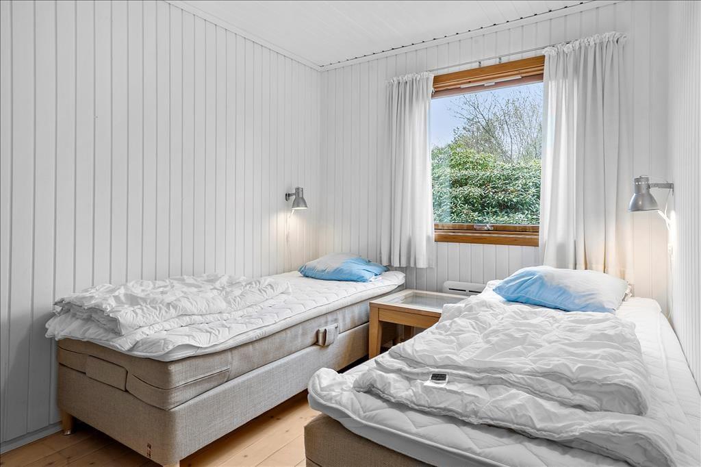 Så snart du træder ind i sommerhuset, fornemmer du den rolige atmosfære og de gode rammer for samvær. Hjertet af huset er opholdsstuen, som forener siddeområde og spiseplads i ét – perfekt til afslappende aftener, hvor feriesamtaler og kortspil får lov at fylde. Herfra er der direkte udgang til en solrig sydvendt terrasse, som udvider opholdsrummet og lader dagslyset strømme ind. Køkkenet er helt nyrenoveret og moderne, og du har alletiders mulighed for at tilberede lækre feriemåltider i godt selskab. Fra køkkenet er der adgang til havestuen, hvor du kan nyde de lune sommeraftener, selv når duggen falder og aftenen bliver kølig. Når dagen runder af, kan familien fordele sig i tre hyggelige soveværelser, heraf ét med dobbeltseng og to soveværelser med to enkeltsenge.