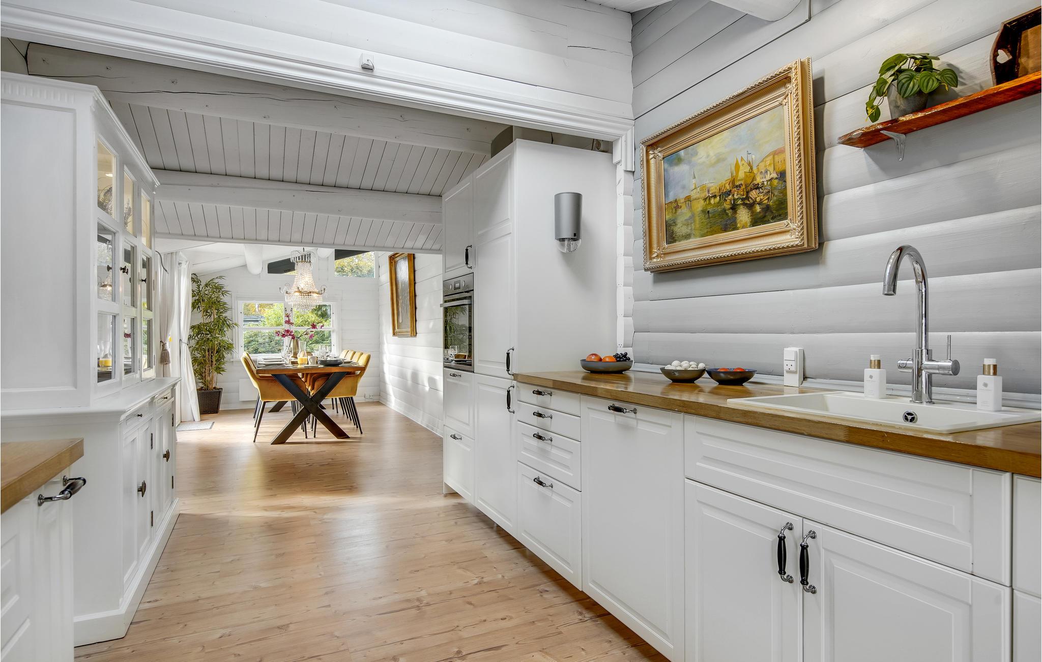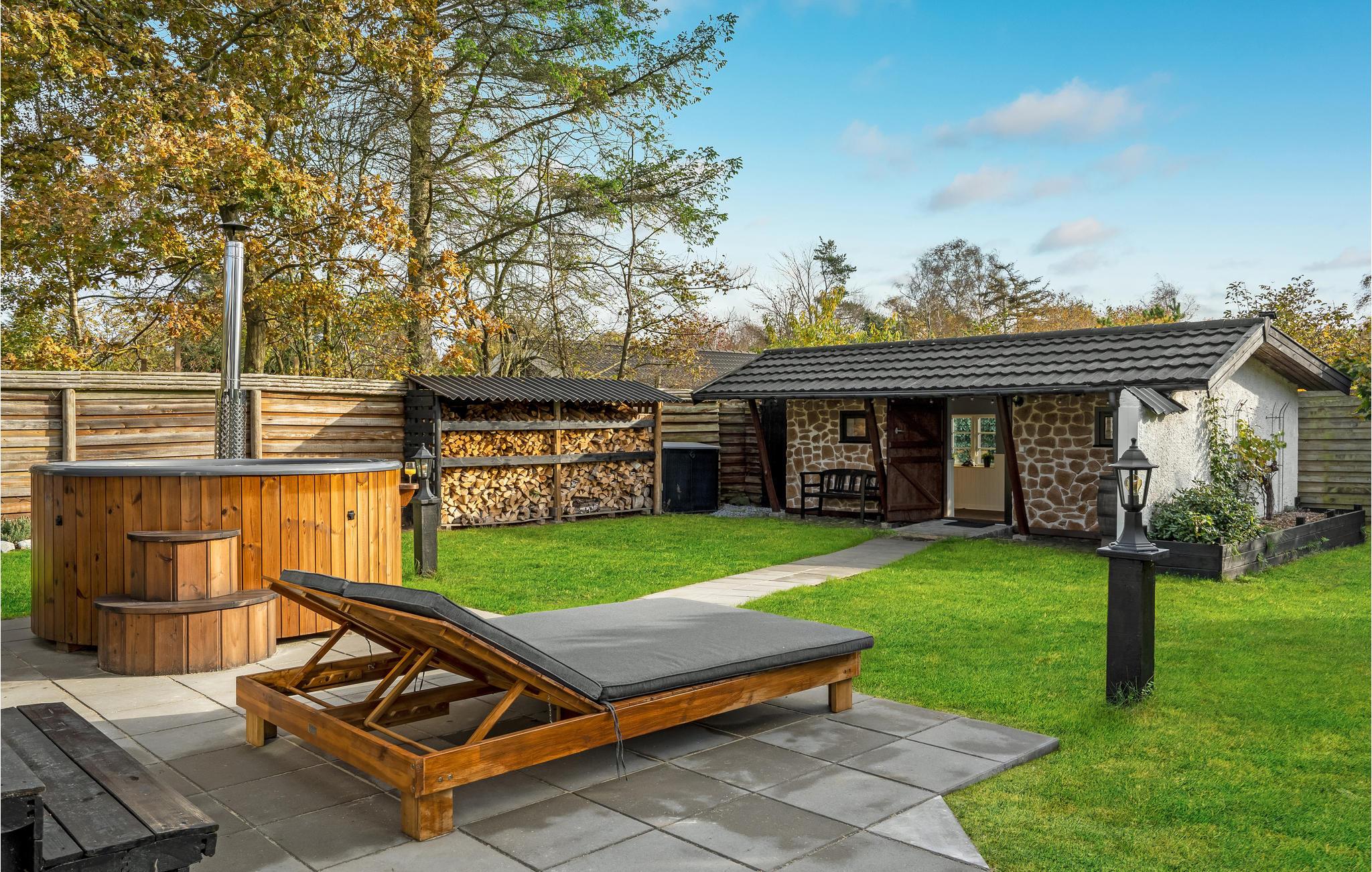 Dette lyse og komfortabelt indrettede feriehus rummer tre soveværelser, to badeværelser, spisekøkken samt en stue og har plads til op mod seks gæster. Her skorter det ikke på mulighederne for at slappe af - der er nemlig både sauna, vildmarksbad i haven og brændeovn i stuen. Haven giver jer hyggelige rammer om samværet og børnenes leg mens den skønne terrasse er det perfekte sted at spise morgenmad eller afslutte dagen med et glas vin. Når I er i humør til at grille, har I også udstyret klar til det.
