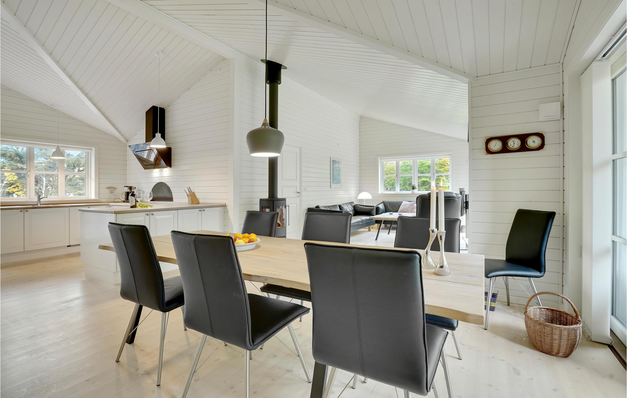 Lad roen sænke sig over jer så snart I træder ind i dette lyse og hyggelige sommerhus. Den rummelige opholdsstue vil blive samlingsstedet for hele familien, og I vil helt sikkert tilbringe mange timer her med brætspil og ild i brændeovnen. Spisestuen ligger i forlængelse af det åbne køkken og lader jer nyde hinandens selskab, mens måltiderne tilberedes.