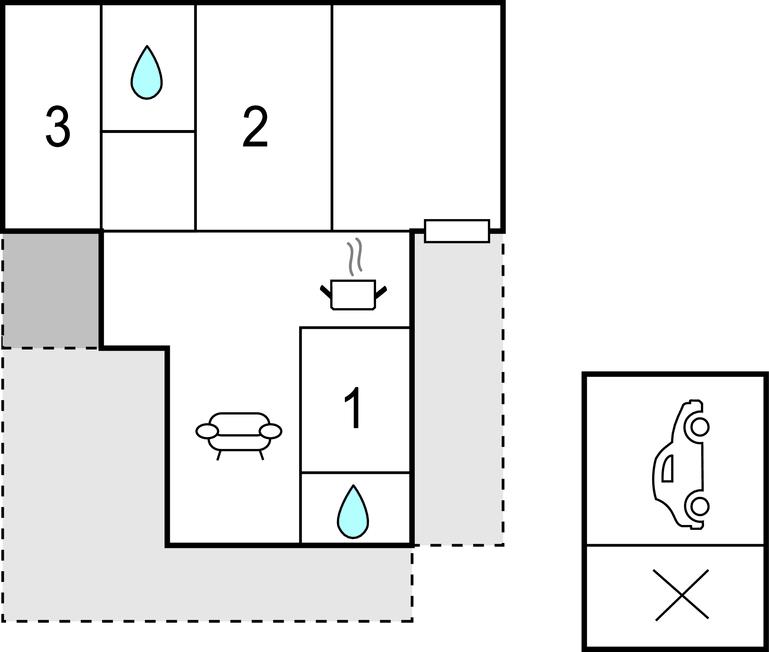 Soveværelse (nr. 3) - 2 Sovepladser. (Sofa, madras eller lignende).