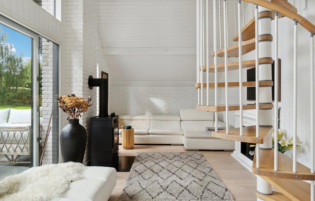 Nyd en vidunderlig ferie i dette feriehus i Smidstrup Strand. Træd ind i det lyst indrettede og særdeles indbydende hus med afstemte møbler, dekorative detaljer og kig ud i naturen gennem gavlens store panoramavinduesparti. Huset er en drøm af hvid og lyst træ og en oplevelse i sig selv. Der er åbent mellem etagerne, hvilket giver huset en unik atmosfære, der er præget af en let sommerfriskhed. I det store åbne opholdsrum vil enhver føle sig godt tilpas, og der er flere skønne hyggekroge. Nyd kølige drinks og solen på terrassen og se jeres børn hoppe på trampolinen.