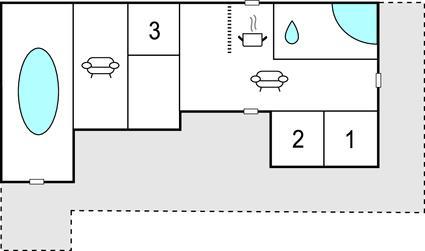 Opholdsstue/køkken - 1 Soveplads. (Enkeltseng(e)). 2 Sovepladser. (Sofa, madras eller lignende).
