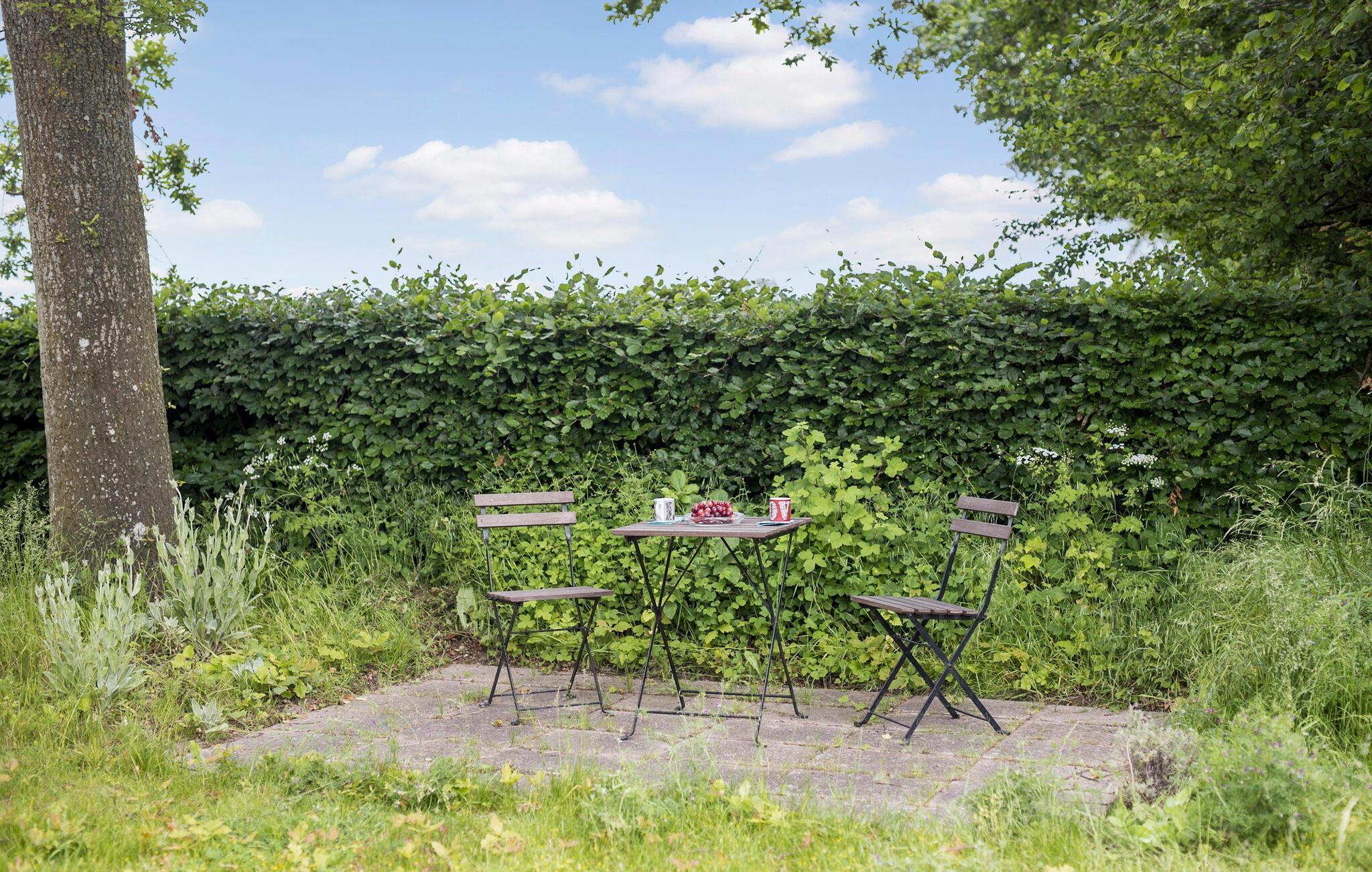 Fra stuen kan I træde ud på den overdækkede terrasse, hvor I kan nyde jeres måltider. Den naturlige grønne have er oplagt til både leg, afslapning og observering af det rige dyreliv.