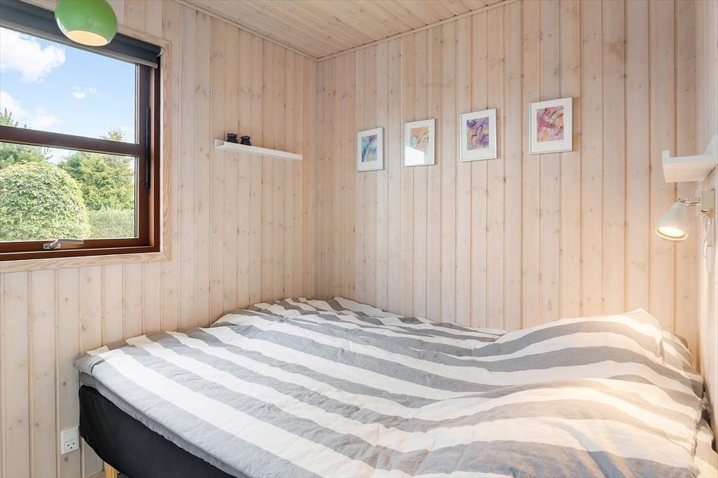 I dette mindre klassiske sommerhus, kan du med det samme mærke, at her er der hygge og at I kan nyde ferien med hinanden. Vinduerne i alrummet giver et dejligt lysindfald, og haven kommer på den måde helt indenfor. De gennemgående lyse trævægge overalt i huset skaber en dejlig sommerhusatmosfære, så du kan godt glæde dig til ferien her! Stuen og køkkenet er husets samlingsrum, og i køkkenet gør det muligt at tilberede aftensmaden, mens du fordyber dig i samtaler om dagens oplevelser med dem, der sidder ved spisebordet eller sofaen. Med spisebordet i midten af rummet, er der plads til, at I alle kan spise sammen eller spille et spil hvor øjeblikke blive til minder og latter som fylder rummet. Ved siden af spisebordet og stuen er en havedør ud til en syd vendte overdækket terrasse, så det er også dejligt at tage måltiderne med udenfor og nyde udsigten til natur og have. Det er helt perfekt at sidde her med en bog eller tænde for en god film. Her kan I virkelig slappe af, og nyde at være på ferie.